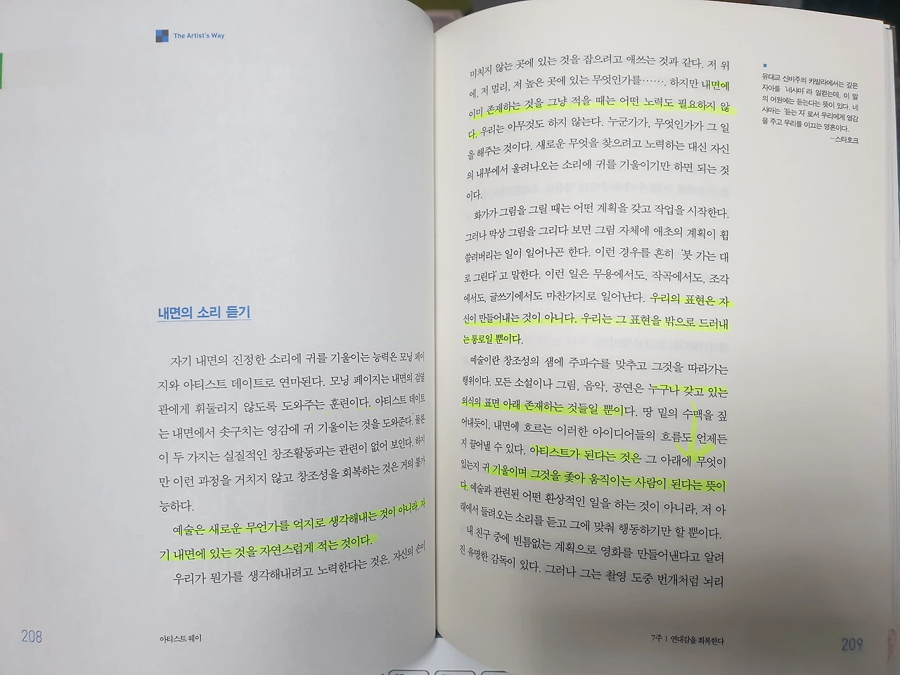 • 아티스트가 된다는 것은 누구나 갖고 있는 의식의 표면 아래 존재하는 것들에 귀 기울이며 그것을 쫓아 움직이는 사람이 된다는 뜻이다.
