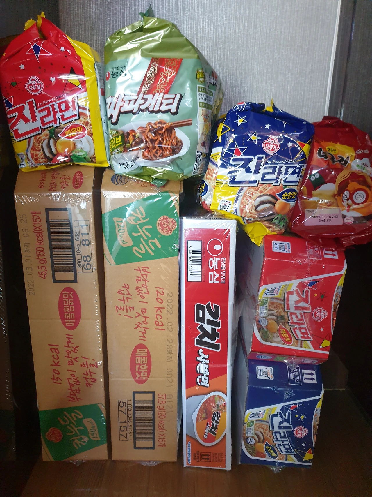앵글이의 당찬 거절로 쇼핑앱을 열어 종류대로 라면을 주문해 봅니다. 컵라면과 봉지라면을 하나 가득 장바구니에 담고 결제하기를 누르고 나니 마음이 한 결 가볍네요. 늦은 저녁 동네 슈퍼에서 배달 온 라면입니다. 잔뜩 쌓인 라면을 보니 언제 다 먹을까 싶지만 팔을 자유롭게 사용하려면 두 달은 족히 걸릴 듯 하니, 한 끼 때울 거리가 채워진 것만 봐도 마음은 넉넉해진 저녁입니다.