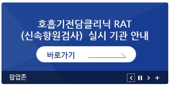 신속항원검사 전담병원은,보건복지부 홈페이지 하단 호흡기 전담 클리닉 실시기관 안내 배너를 눌러 각 지역 내 병원 리스트를 확인하시면 됩니다.