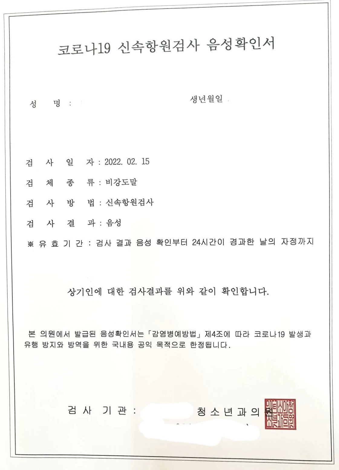 진료를 위해 찾아온 일반 환자분들과 검사자를 위한 음압 진료실을 따로 두어 안심이 되었습니다. 진료 및 예방접종 환자들 입장에서는 코로나 검사를 위해 방문한 환자와 섞여 대기실에 있는 것이 부담스러울 수 있기에 배려한 것 같습니다. 검사를 마치고 결과가 나오기까지 3분 정도의 시간이 걸렸습니다. 정확도가 PCR 검사에 비해 떨어진다고 하지만 검사자 입장에서는 동네 병원에서 검사를 받을 수 있어 좋은 점이 더 많은 것 같습니다.