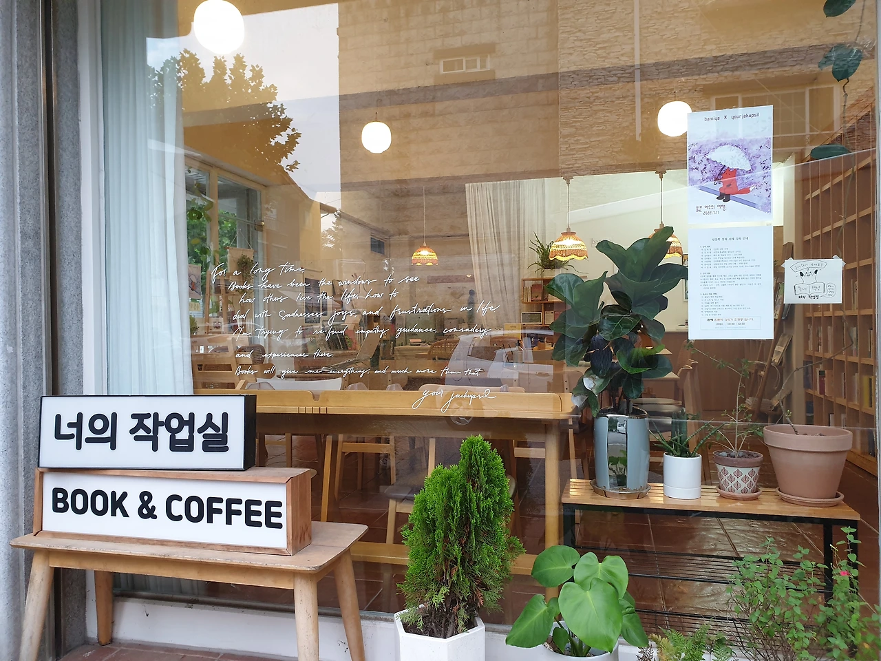 최근 제가 가장 많이 자랑하는 책방입니다. '너'의 작업실이라고 이름한 것도 새삼 참 좋습니다. 나도, 우리도 아니고 '너'라고... 이름하니, 마치 책방이 나에게 "야! 너도 들어와!!"라고 하는 것 같습니다. 이곳에서 '인생 글쓰기' 수업에 참여하고 있고, '함께 책을 통독'하는 수업에도 참여할 예정입니다. 북 토크, 그림책 수업, 글쓰기 수업 등 다양한 강좌가 열리고, 작가들이 글 작업을 할 수 있도록 공간을 제공하는 독립 책방이죠.