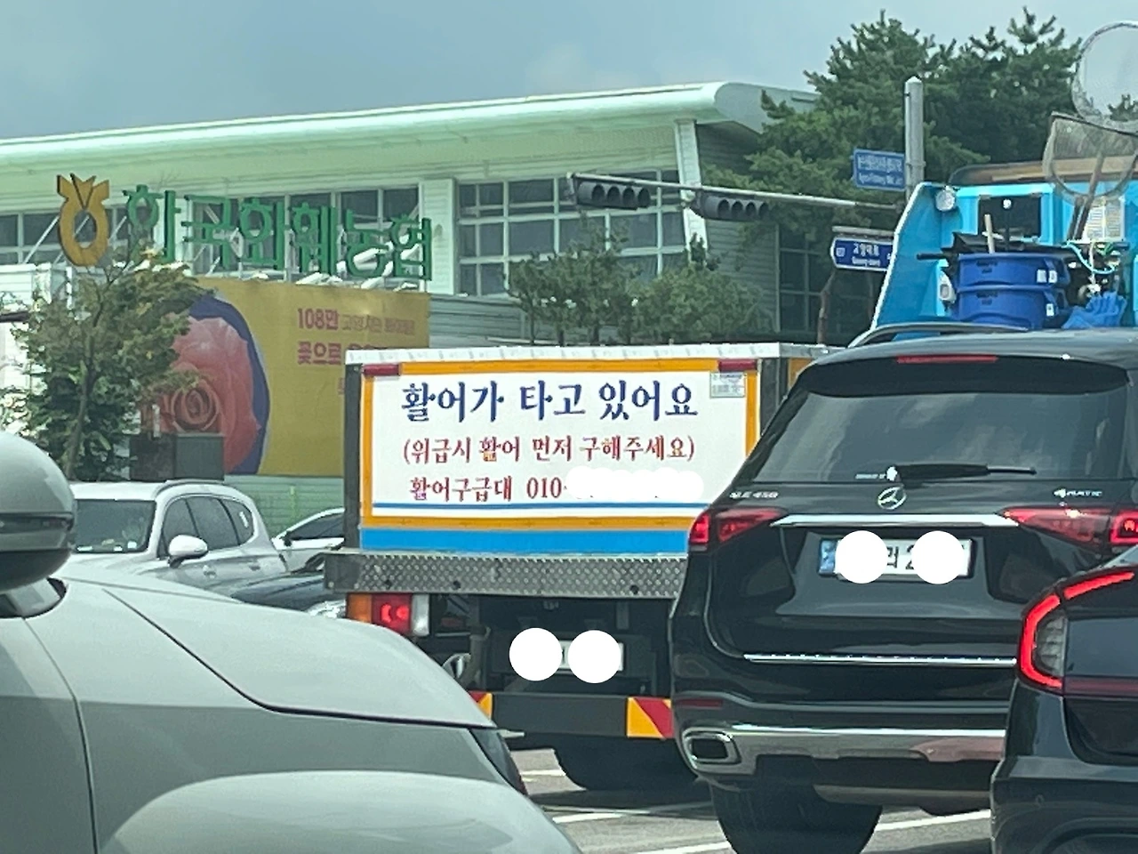 도로에서 우연히 "위급 시 활어 먼저 구해주세요."라고 적힌 트럭을 보았어요. 당신의 안위보다 귀한, 활어가 타고 있는 트럭이었죠. 사장님의 마음이 고스란히 전해지는 웃픈 글귀였어요. 그래도 활어보다 사장님이 더 안전하고 건강하셨으면 좋겠습니다.