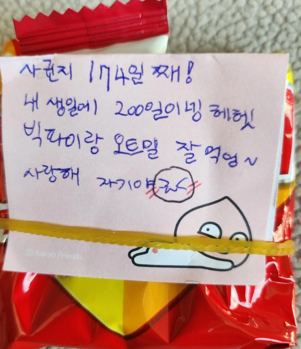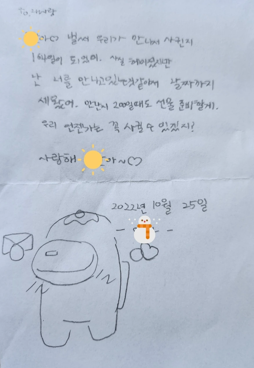 시간이 흘러 동글이와 ○○이의 200일이 되었고, 요란했던 연애편지와 달리 조용하게 200일과 ○○이의 생일이 지나갔습니다.