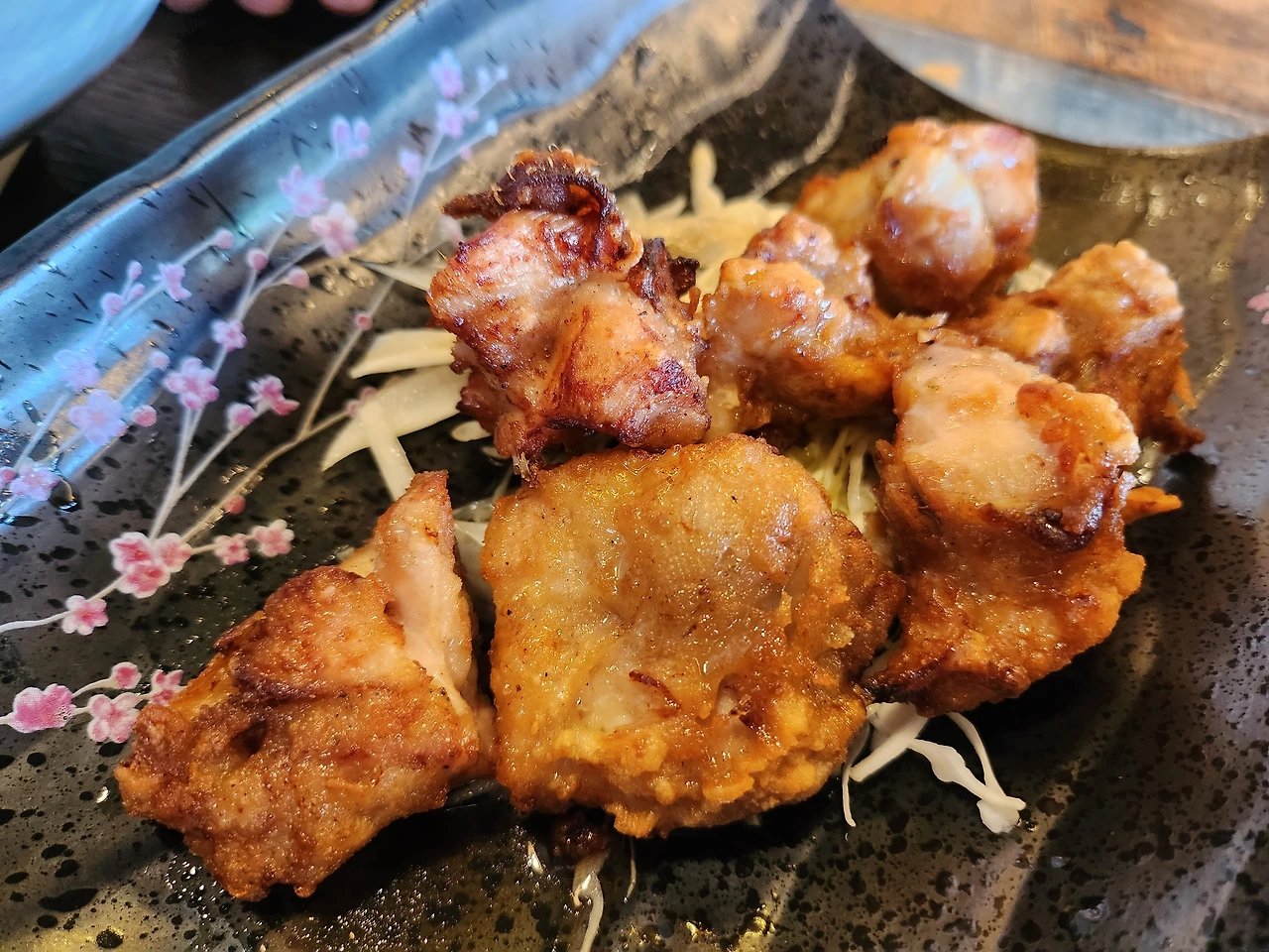 치킨가라아게가 먼저 나왔습니다. 음.. 역시 맛있습니다. 다른 매장에서도 맛보았던 흔한 메뉴지만 이곳 치킨가라아게가 훨씬 맛있습니다. 적당히 바삭하고, 달고 짭조름한 소스와 양배추, 양파 슬라이스의 아삭함이 어우러져 일품입니다.