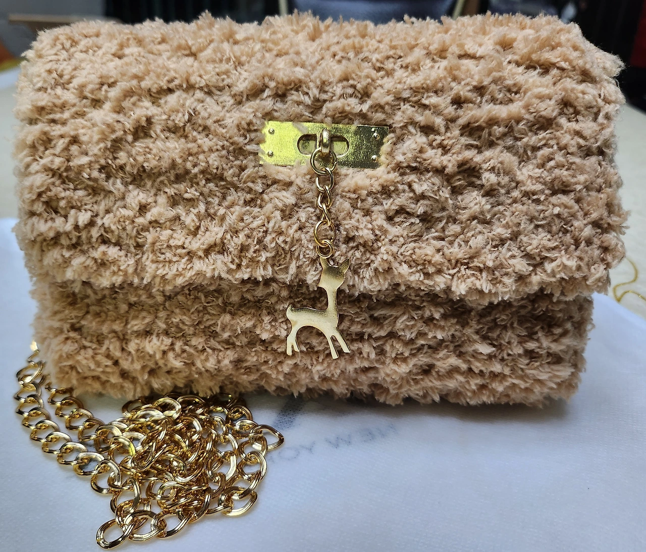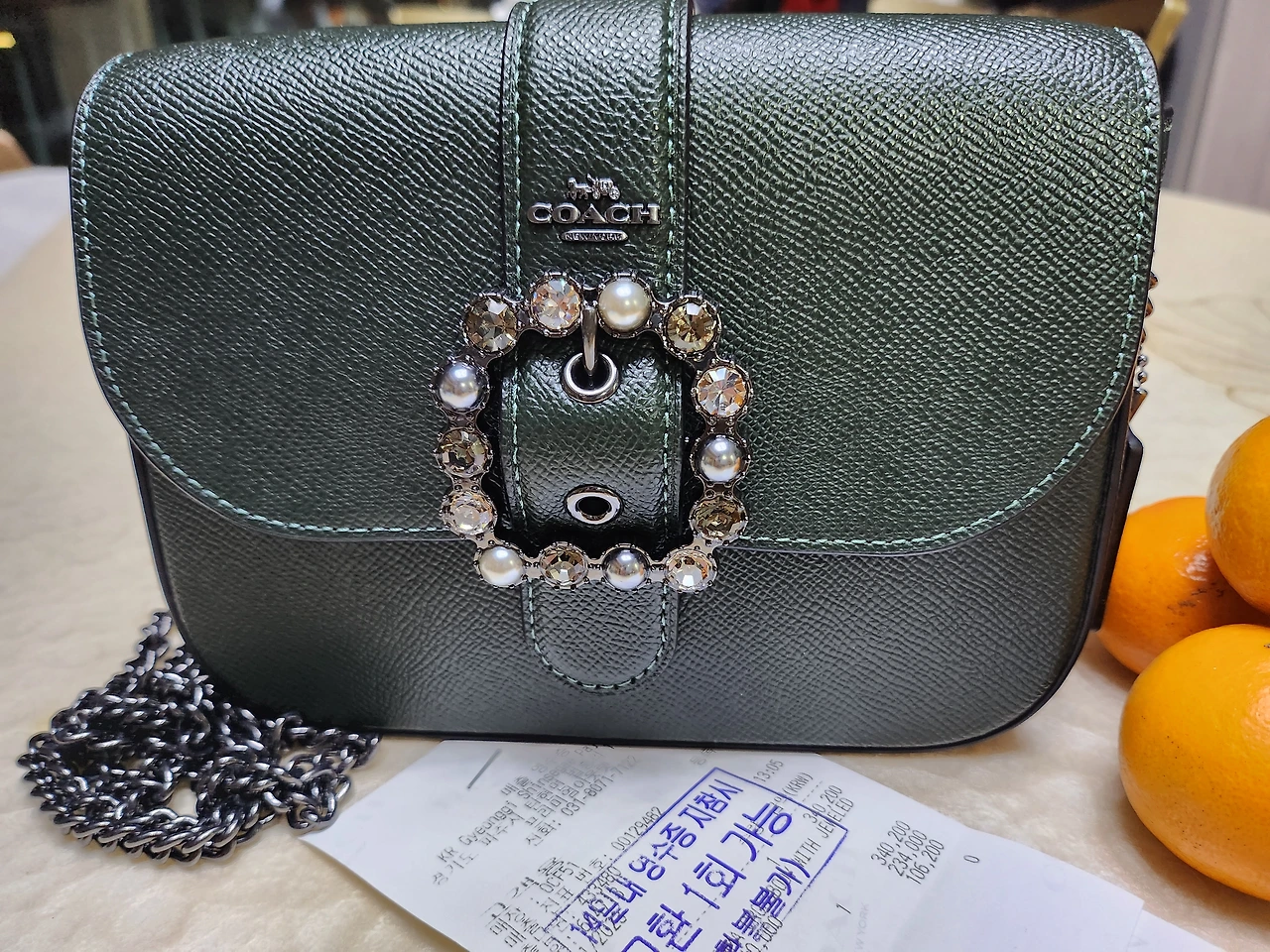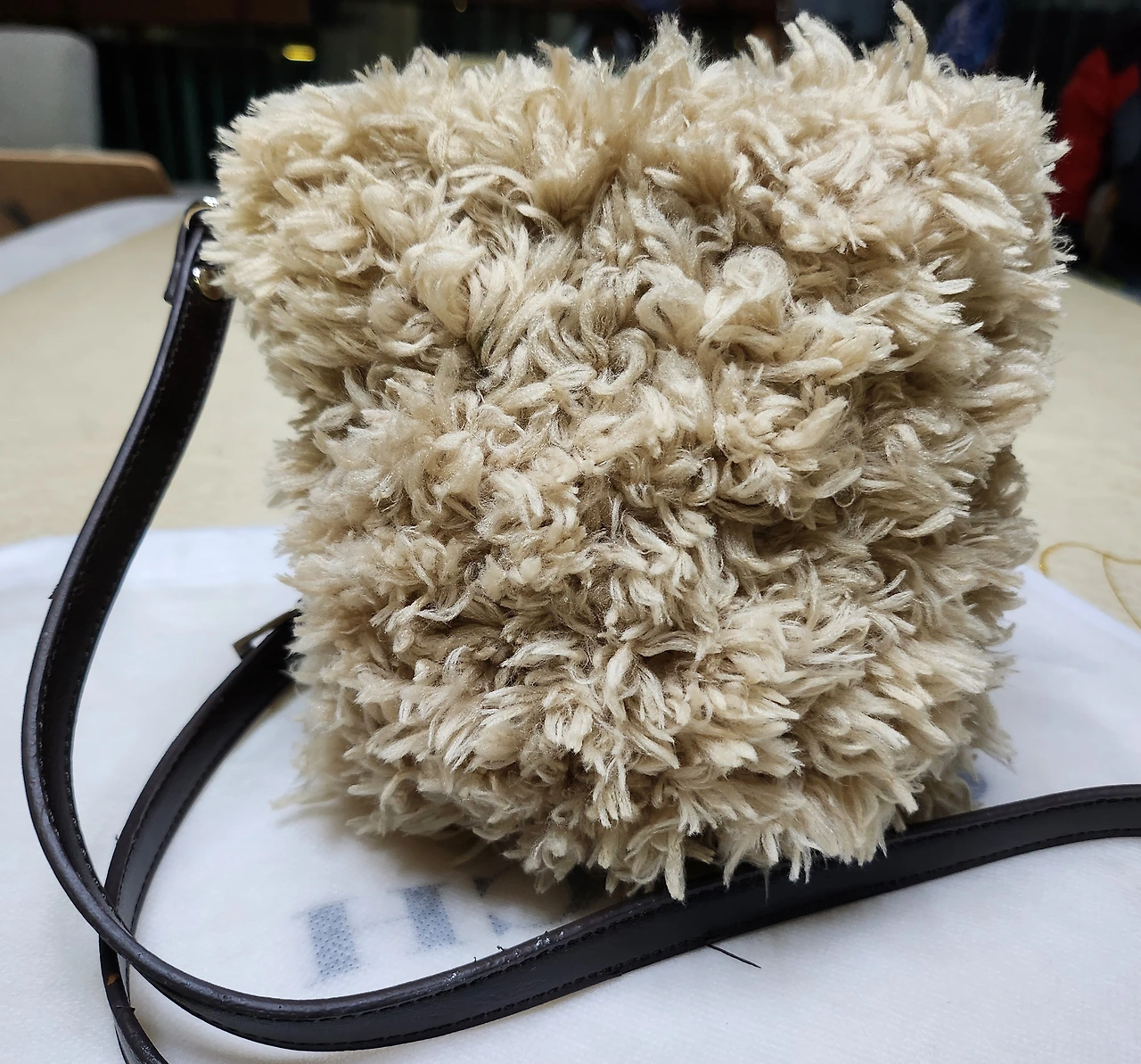"좋지? 그럼 베이지색으로 만들어줘. 퍼 코트랑 같이 메게..."