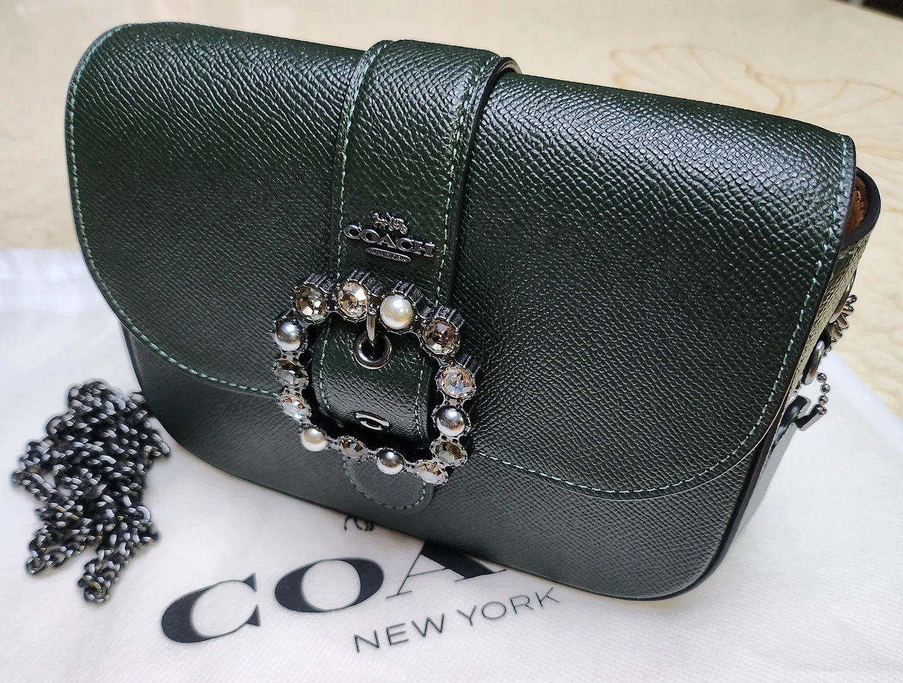 앵글이에게는 엄마랑 같이 사용할 가방을 사자고 했었거든요. 앙증맞은 사이즈에, 앵글이가 좋아하는 보석도 콕콕 박혀있고, 비슷한 다른 가방에 비해 무게감이 없었어요. 안성맞춤이었죠. 그래서 고민 없이 '저, 이 가방 주세요'라고 했지 뭐예요.