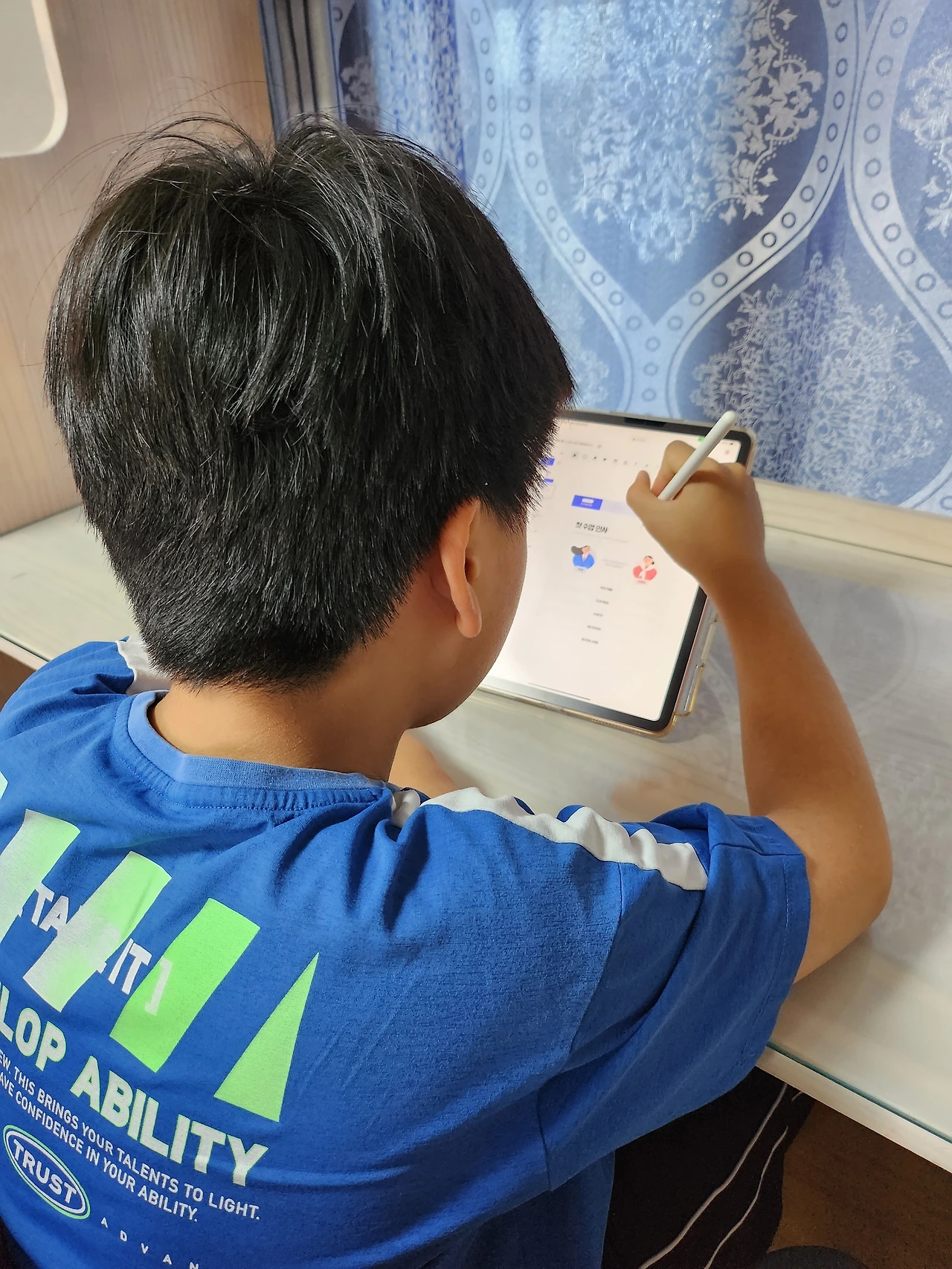 비대면이라 걱정했지만 알려주시는 대로 준비하니 어려움은 없었습니다. 더 좋은 건, 아이가 배우고 있는 교재를 직접 등록해서 사용할 수 있다는 점이었습니다. 학원을 옮길 때마다 그곳에서 사용하는 교재로 바꾸게 되어 불필요한 지출을 하게 되는데, 사용하고 있는 교재를 그대로 쓸 수 있는 것은 큰 장점이었습니다.