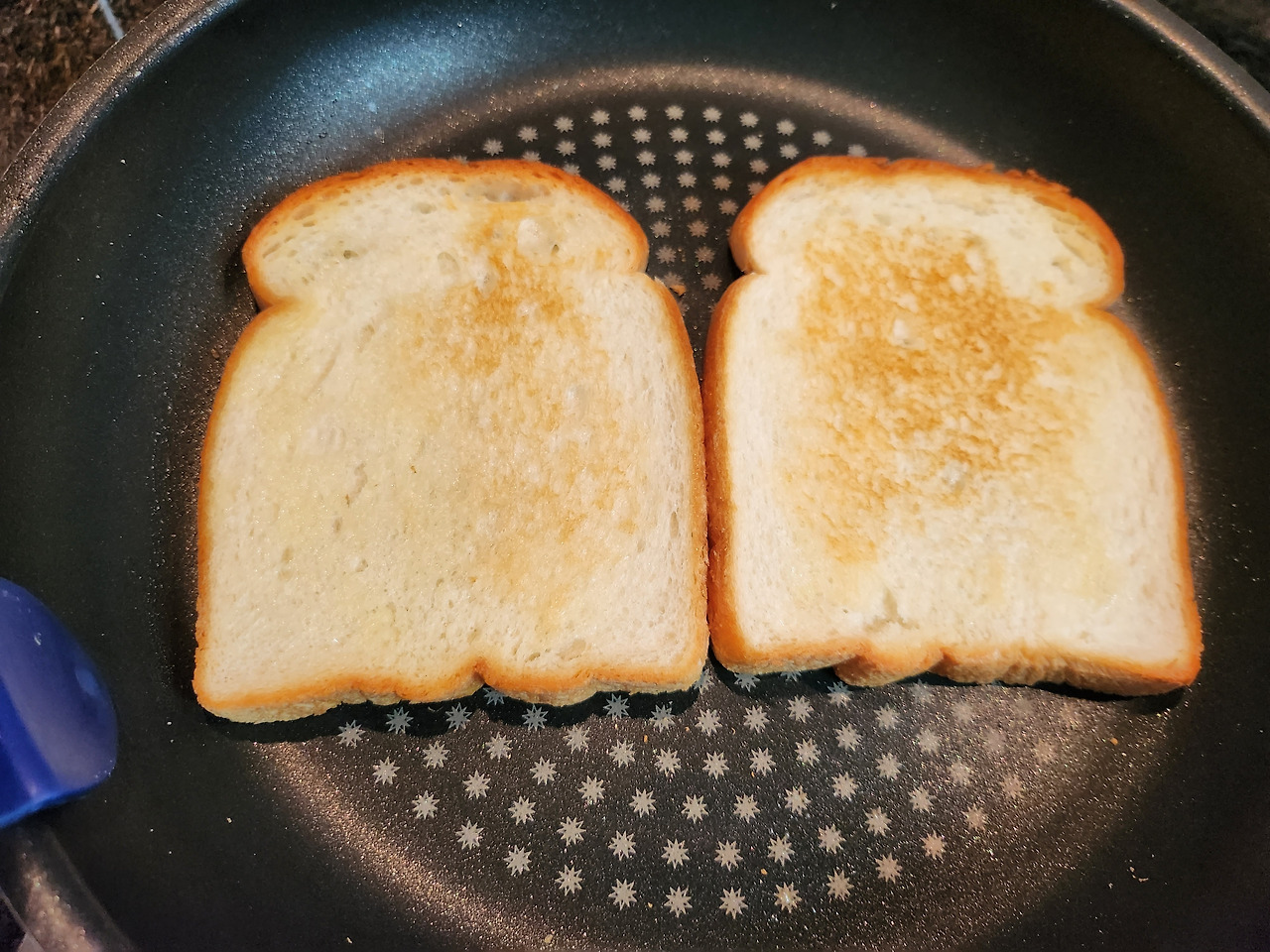 1. 버터를 녹인 후 노릇하게 식빵 굽기 (또는 토스트기에 굽기)