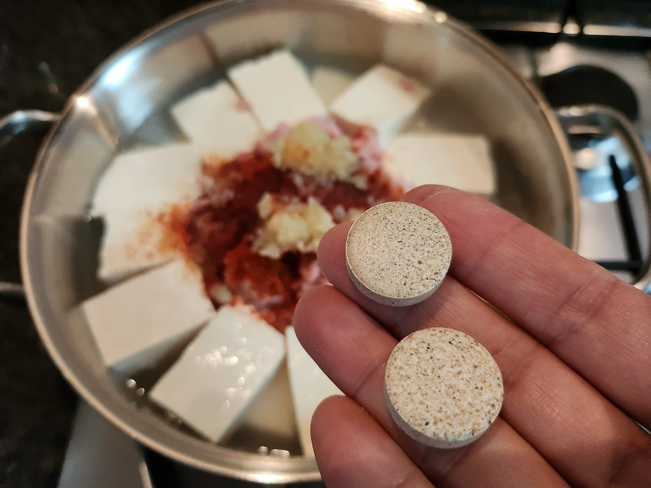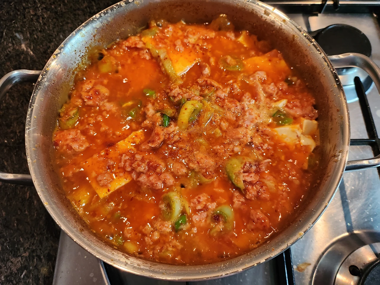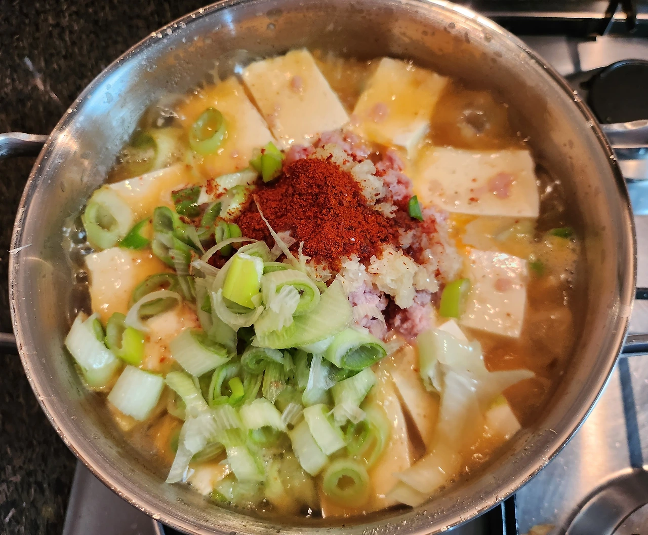 ◉ 재료 : 두부두모, 스팸, 대파, 동전육수, 다진 마늘, 고춧가루, 멸치액젓, 쌀뜨물