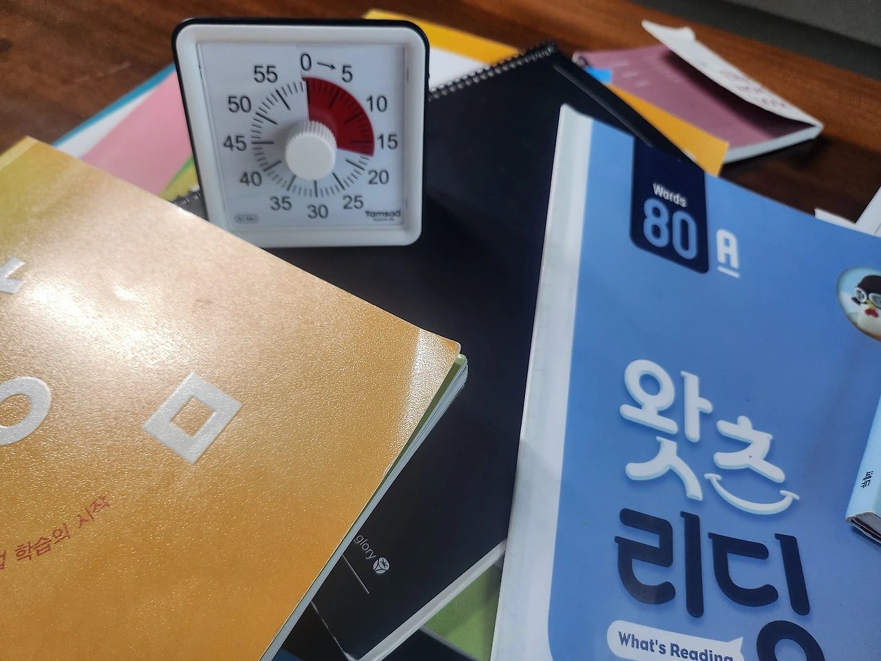 어느 날 동네 친구에게서 핫 아이템 하나를 소개받았습니다. 바로 '공부타이머'라는 것입니다. 요리할 때 사용하는 타이머와 비슷하게 생겼지만 공부타이머는 설정된 시간을 색깔로 구분해 주고, 주어진 시간이 마쳐지면 알림음이 들립니다. 이렇게 좋은 것을 왜 이제야 알았을까요?