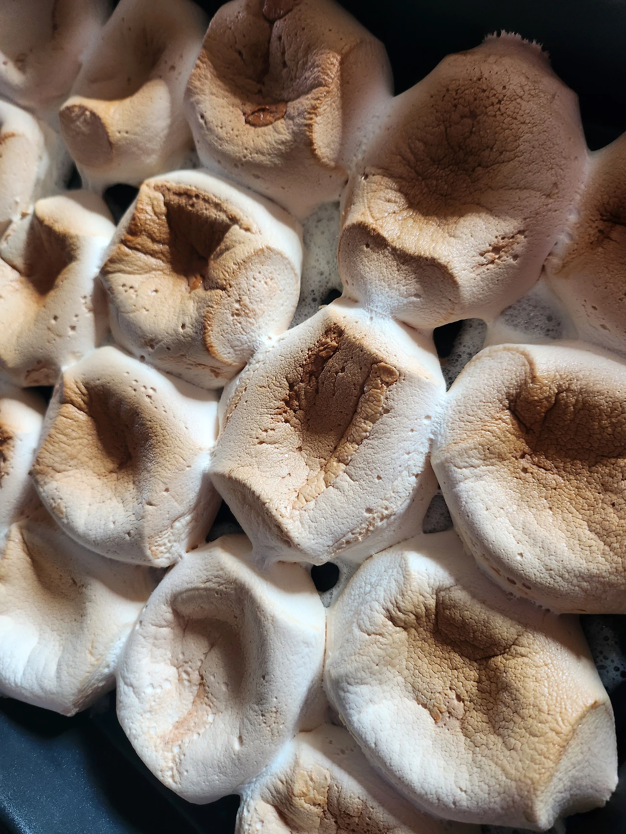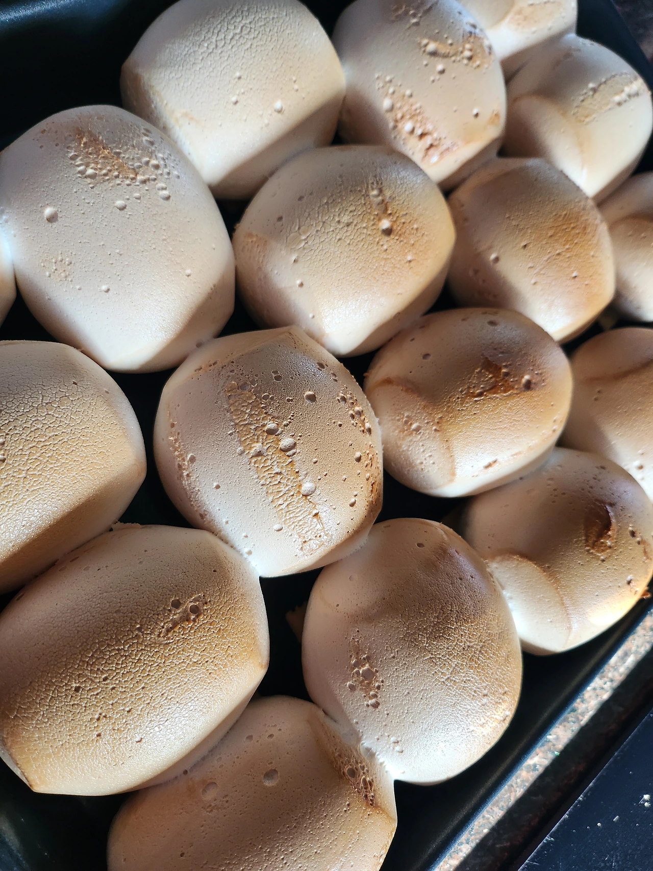 마시멜로가 풍선처럼 두둥~ 부불어 오르면 이미 완성이지만, 살짝 갈변했을 때 더 먹음직해 보이니 개인 취향에 따라 선택하시면 됩니다.