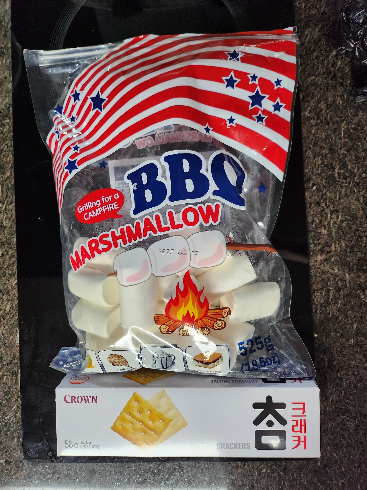 마시멜로는 꼭 바비큐용으로, 비스킷은 아이비 또는 참크래커를 구입해 놓으면 준비 끝이에요. 간단하죠?