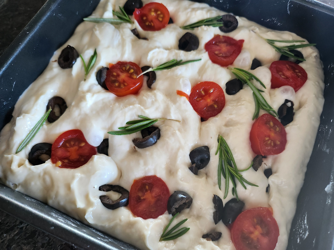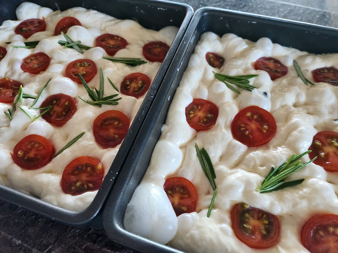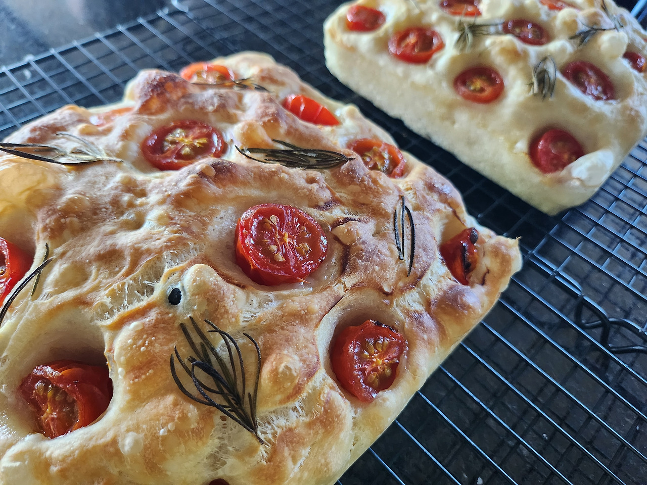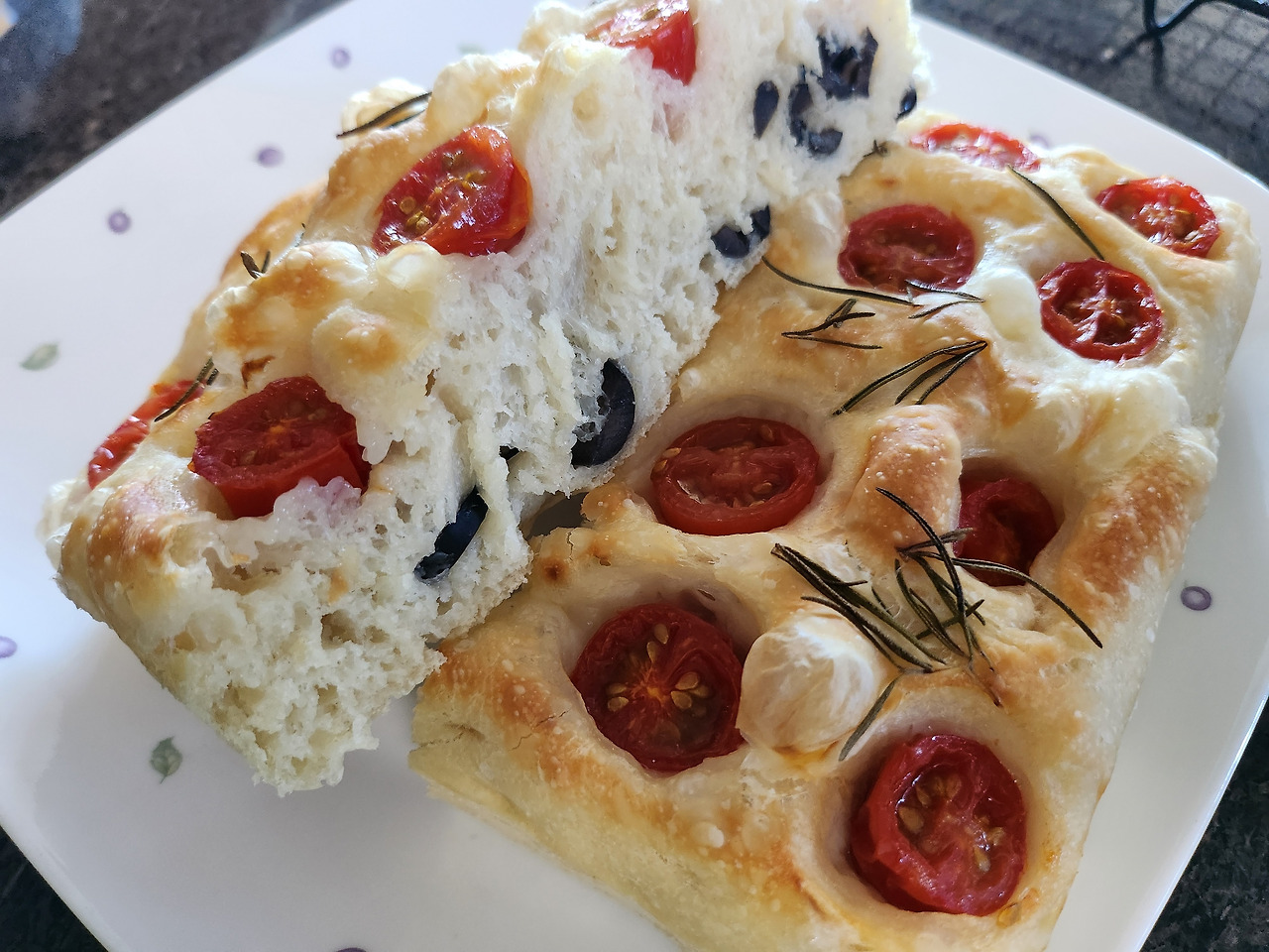 포카치아는 무반죽빵이라 소화도 잘 되기 때문에 어린아이도, 지긋한 어르신께도 안성맞춤입니다. 로즈메리 살짝 얹으면 풍미가 배가 되어 더 매력적인 맛을 선물해 줘요. 쫀득한 식감의 포카치아, 꼭 한번 만들어보시길 추천드려요.