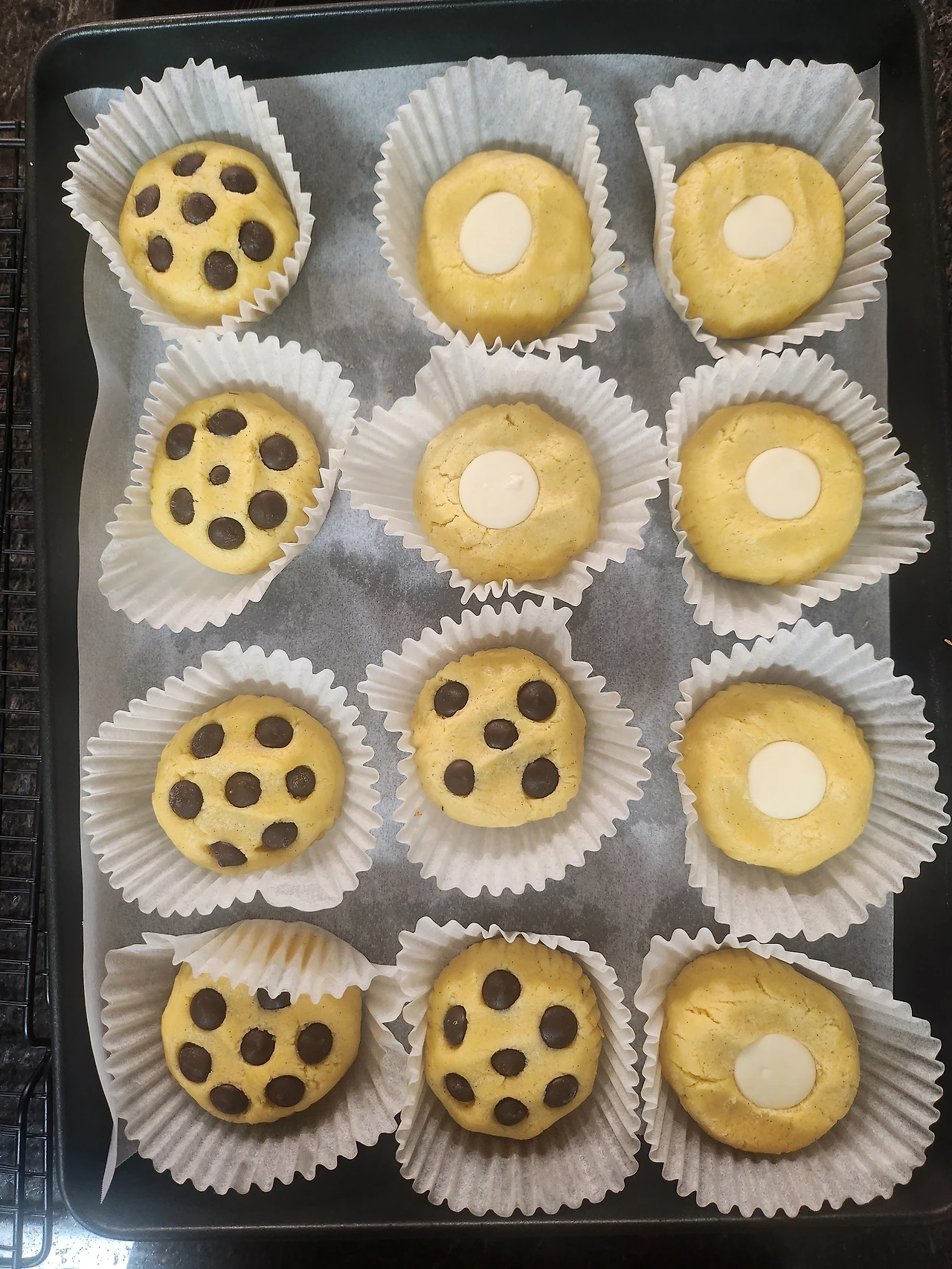 ◉ 쿠키반죽재료 : 중력분 250(박력 150+강력 100), 버터 110, 백설탕 75, 흑설탕 75(없을 땐 아무 설탕 150), 달걀 1개, 바닐라익스트렉(또는 바닐라가루, 럼, 생략가능), 베이킹파우더 4, 베이킹소다 2