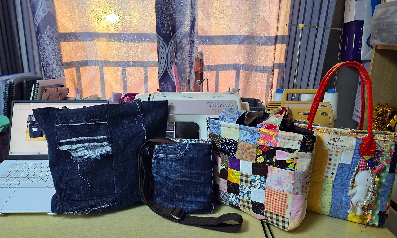 “바지 두 개 뜯어서 가방 세 개 만들었어.”