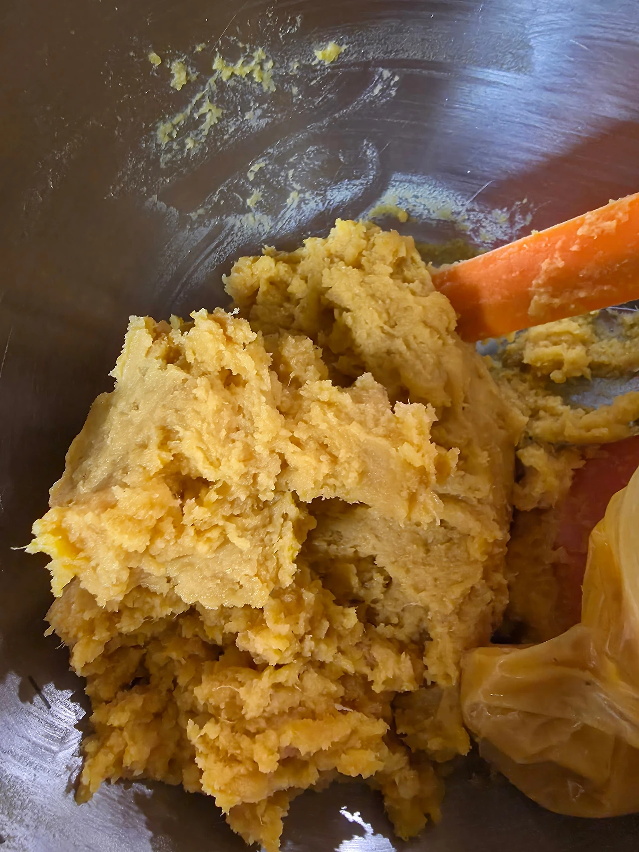 (수분이 많은 고구마도 괜찮아요. 오히려 적당히 촉촉해서 잘 뭉쳐져요.)
