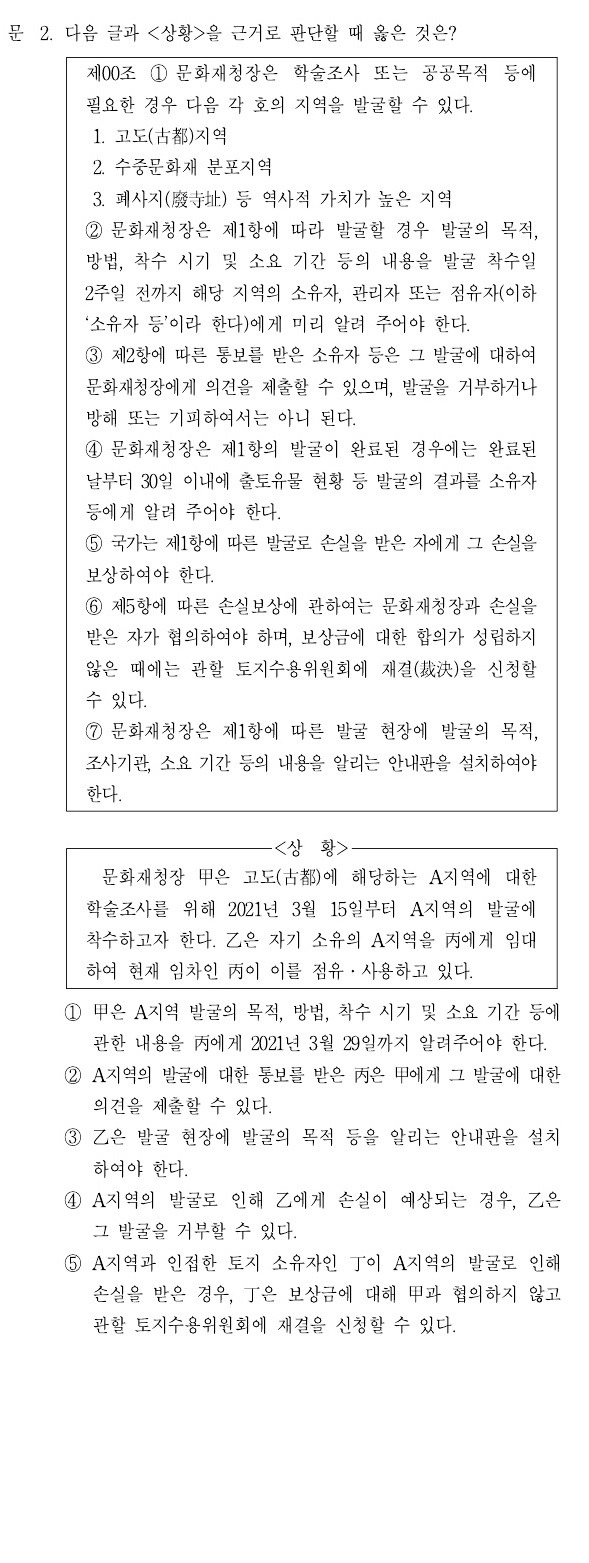 다음으로 오른쪽 문제를 보자. 일부러 법조문형 문제 중 난도를 높이기 위한 작업이 많이 들어간 문제를 찾아왔다. 사실 출제자 입장에서도 좌측과 같이 현행 법규정을 그대로 복붙하는 것이 편하다. 그렇지만 이 경우 문제가 너무 쉽다는 지적(출제검수 과정에서 타 출제위원이나 검수위원들이 '너무 쉬운데요?ㅋ'라고 말하면 은근히 자존심 상한다 ^^ 빠직)을 듣기 쉽고, 애써 만든 문제가 기출문제에 포함되지 못하고 탈락할 가능성이 있다. 그래서 법조문을 일부러 줄글 형태로 변형하기도 하는데 그게 오른쪽 (2021년 상황 4번) 문제에 해당한다.