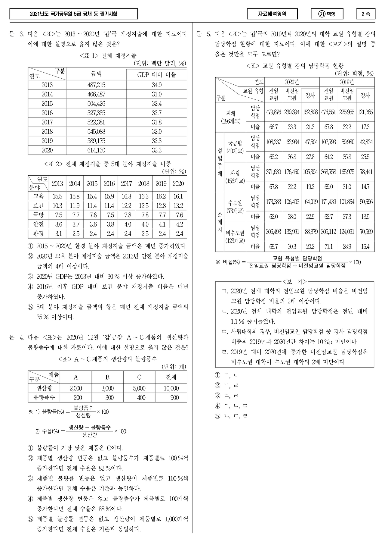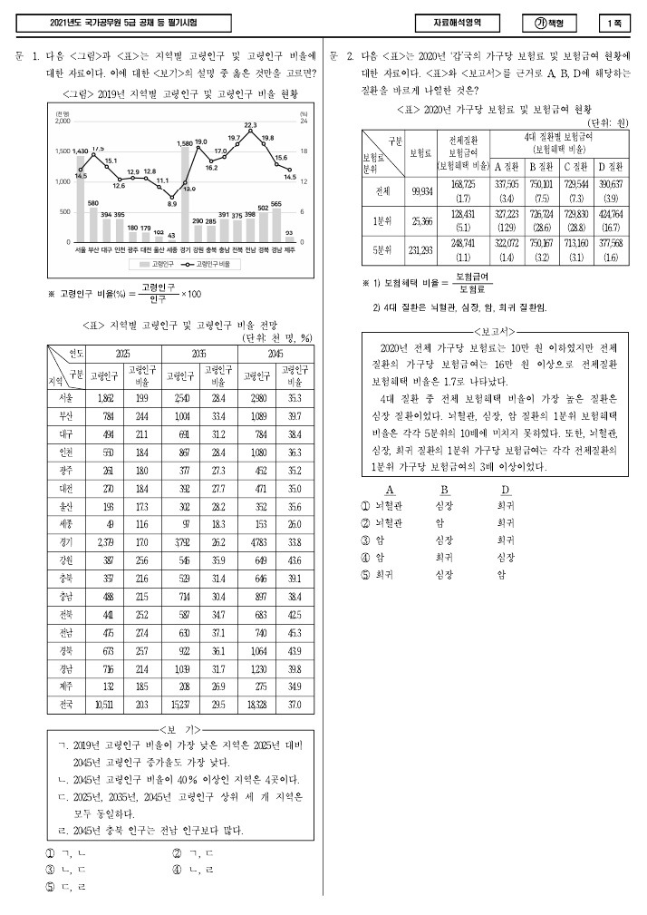 위 문제는 올해 초 시행된 5급 공채 PSAT의 1번, 2번 문제다.