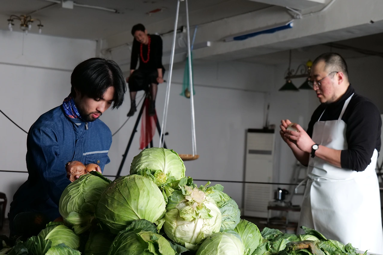 김승록. 커다랗고 순발력 있는 체구를 가진 그의 몸이 그의 가장 큰 장치가 되었다. 칼과 불 물 연기를 휘두르고 뿜는 그의 움직임이 다소 위협적인 사진을 만들어냈지만 야채를 찾아다니고 캐고 씻고 하는 동영상에서는 왜인지 귀엽고 의지하고 싶은 친근함이 묻어났다. 퍼포먼스를 보는 내내 나는 그의 힘(물리적인 힘 말고 존재감적인 면에서)에 압도되어서 그를 지속적으로 집중하게 되었는데 당최 그 힘의 출처를 찾을 수가 없어서 당황했다. 퍼포밍에는 표면적으로 한 약속 과 더불어 언급되지 않은 모든것이 퍼포머에게 맡겨진다. 너무 당연해서 새삼스럽게 들릴 것이다. 이를테면 무대까지 걸어나오기, 시작하기, 보기, 있기 등 몸이 아무것도 하지 않아도 그가 거기에 있다면 많은것을 말하고 있게 된다.(본의 아니게) 그렇기게 의식적인 계획 이외에 많은 무의식이 안전하게 의식을 떠받치고 있기 위해서는 의식하고 있으면 안된다. 그냥 그 상태로 존재해야 하는 법. 왜인지 그것을 본 느낌. 10번의 만남동안 그가 구축한 그 방법이 무엇이었을까 궁금해진다.