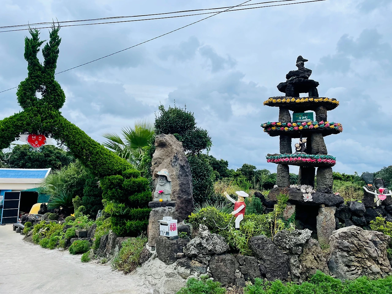 제주의 올레길은 참 매력이 있다. 해변가를 걷다가, 오름을 오르다가, 고즈넉한 마을을 지나다가 한다. 한 코스, 한 코스마다 대부분 그 모든게 녹아있다. 올레 2코스를 한참 걷다보니 제주에서 나는 돌과 조개껍데기로 장식품을 만든 집을 지나치게 되었다. 조형물 하나하나가 모두 제주에서 난 것들이다. 현무암, 색색깔로 칠한 소라껍질, 조개껍데기까지. 지역 특색을 이보다 더 잘 반영하여 표현할 수 있을까. 조형물을 찬찬히 살펴보나 첨 아기자기하고 따뜻하고 정겨워 웃음이 난다.