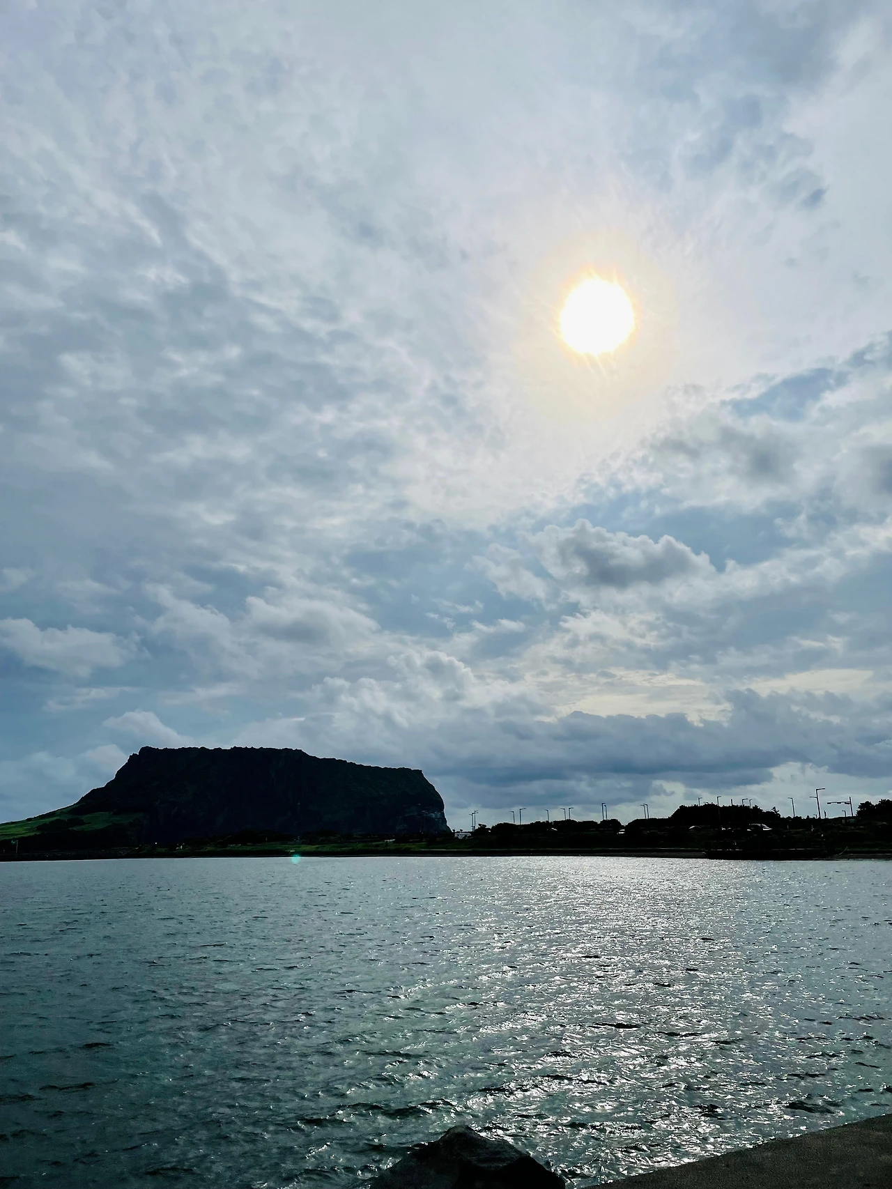 우리가 택한 코스는 올레2코스. 올레2코스는 성산리 광치기 해변에서 출발하여 식산봉, 고성, 대수산봉, 혼인지를 지나 온평리 바닷가까지 이어진다. 약 15km의 코스로 지난번보다 길지만 적당히 흐릿하고 많이 덥지 않은 날씨가 난이도를 많이 낮춰주고 있었다. 시작점으로 이동할 때, 목적지를 잘못 찍어 조금 헤매기도 하고 약간의 우여곡절이 있었다. 하지만, 우리를 밝게 맞이하는 광치기 해변이 서둘러 준비를 하며 느꼈던 피로를 흔적도 없이 씻겨주었다. 약간 흐린 날씨임에도 햇빛을 받아 눈부시게 반짝이던 아침 바다. 도란도란 일행들과 담소를 나누며 올레길을 걷기 시작했다.