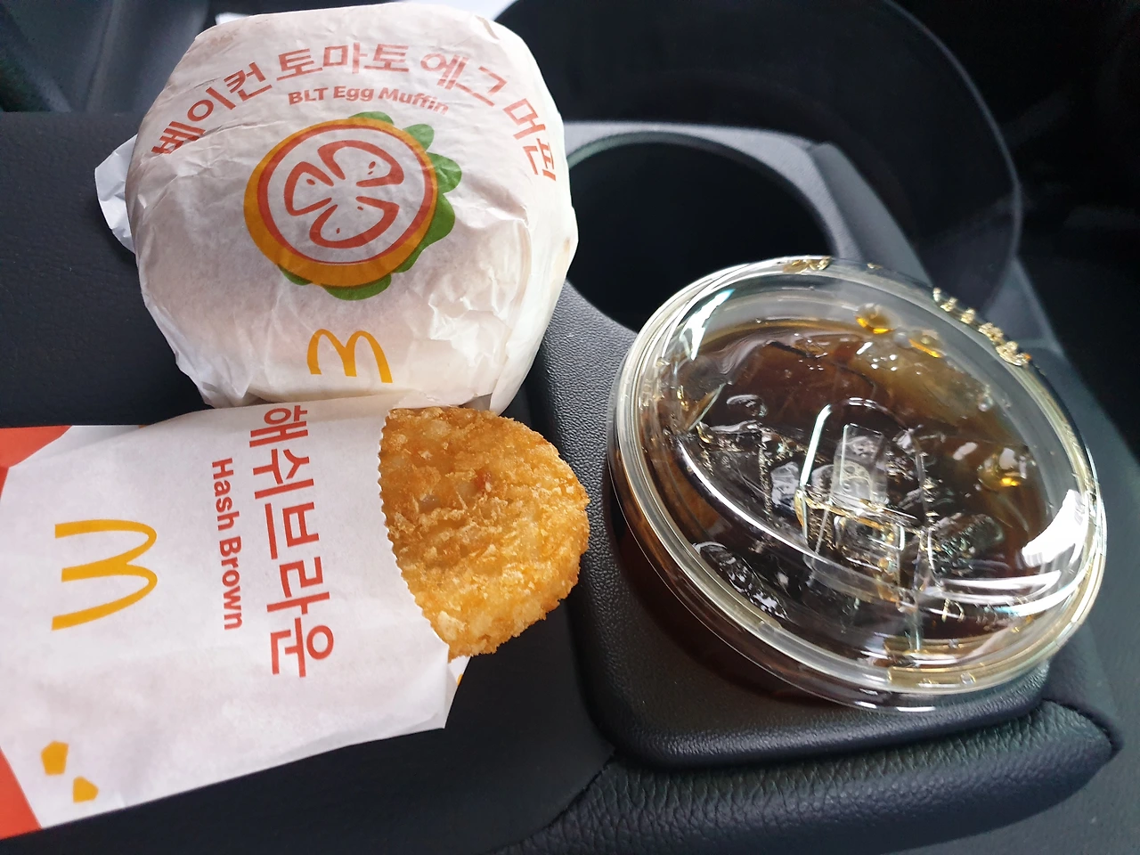 시작점으로 이동중, 공복으로 몇시간씩 걷기에는 좀 무리일거란 생각에 일행들과 맥도날드 서귀포점에서 맥모닝을 포장해서 차에서 먹었다. 맥모닝이 이렇게 맛있는거였나. 인생 첫 맥모닝이었는데 아마도 올레길 단골메뉴가 될 듯 하다.