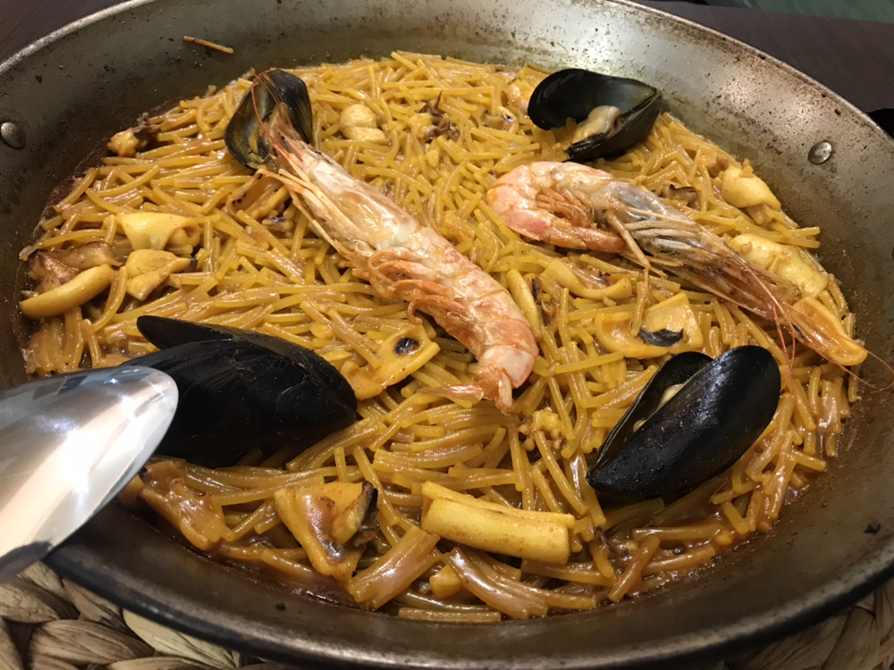그리고 Tenedor 앱을 통해 40% 할인을 받고 들어간 발렌시아 음식점에서 저녁에 피데우아를 시키려 보니, 여기는 여지없이 2인분을 시켜야 된다고 한다. 어차피 1인분 가격을 내게 될 거라고 생각하고 2인분을 시킨 내 앞에 나타난 피데우아의 양은...