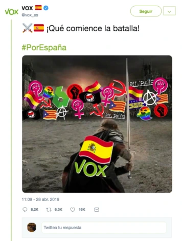 하지만 이 모든 세력에 비해 Vox는 2019년 안달루시아 지방선거 전까지 그 어떤 정치권에서도 의석을 얻지 못하던 존재였다. 아무래도 그 과격한 메시지 탓이 컸으리라...