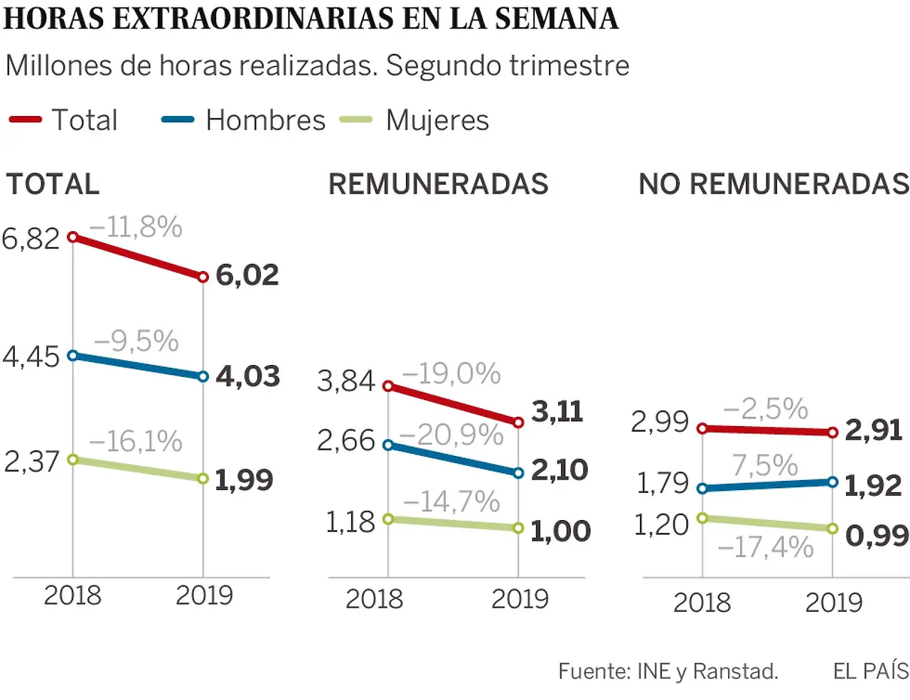 스페인 전체 근로자는 보통 매주 570만 시간의 초과근무를 한다는 데 이 중 260만 시간 정도의 수당이 지급되지 않았다. 결국 정부는 ‘업체 규모에 무관, 정확한 근태 관리를 통해 초과근무수당을 올바르게 지급하라’는 법령을 통과시킨다(관련 기사)