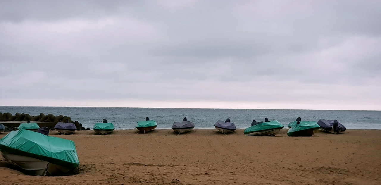 여름 사람이 북적거리게 되면 저 너른 바다를 누비게 될 모터보트들이 아직 봄인 지금은 나란히 휴식 중이다.