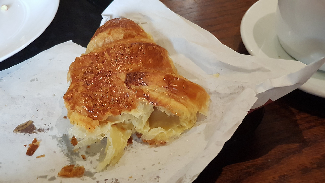 빵이 신선하다니. 버터로 적셔진 반죽은 촉촉하고 고소한 내음으로 내 후각과 미각을 자극하고, 한 입 끝에 살짝 입에 걸치는 아메리카노는 씁쓸하지만 깔끔하게 입안을 정리해주었다.