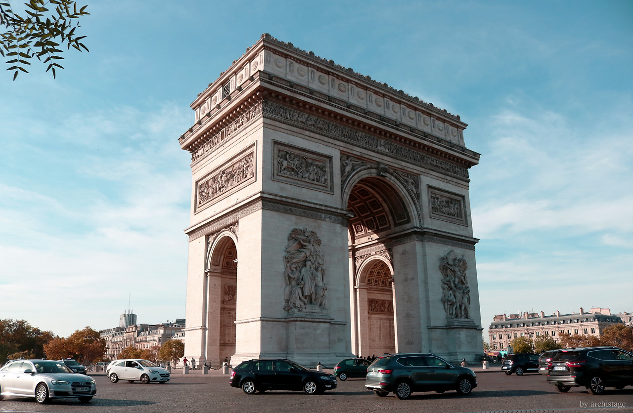 에투알 개선문에 올라 그 중심으로 갈라져 있는 12개의 갈림길을 둘러보았다. 이곳에서 파리의 모든 길이 시작되는 느낌을 받았다. 아니나 다를까 개선문의 역사를 보니 과거 나폴레옹이 했던 지시가 이런 장관을 만들어 냈다. 1805년 12월 4일 ‘오스떼르리츠 Austerlitz’ 전투에서 나폴레옹이 대승을 거둔 그다음 날 병사들에게 사기를 고무시키기 위하여, 이렇게 말하였다. “제군들은 승리의 개선문을 통하여 집으로 돌아가도록 될 것이다. Vous ne rentrerez dans vos foyers que sous des arcs de triomphe”. 제군들의 집이 한 곳이 아니라 파리, 프랑스 곳곳일 텐데 그 모든 곳을 개선문을 통해 돌아가게 하라는 말처럼 사방으로 그 길이 퍼져 거대한 회전교차로가 형성되었다. 이제는 집으로 가는 출발점이 아닌 유명한 관광지로서 도착점의 역할을 하고 있는 개선문을 올라 파리 전경을 둘러보기에 충분히 가치 있는 방문이었다.