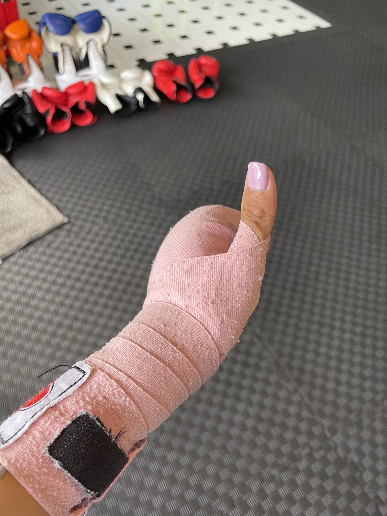 그런데, 한국에서 일 년 반 정도 복싱을 배운 경험이 있던 내게도, 복싱 강국 태국의 트레이닝은 한국보다 훨씬 더 하드 코어했다. 복싱이 끝난 후, 손과 무릎에서 약간의 통증이 느껴져 아대를 풀어보니 손 등은 살짝 까져있었고, 무릎도 킥연습을 하느라 멍들어있었다. 친해진 관장님께 무릎과 손등이 아프다며 찡찡댔더니 관장님이 상처를 쓱 훑더니 무심하게 이야기했다.