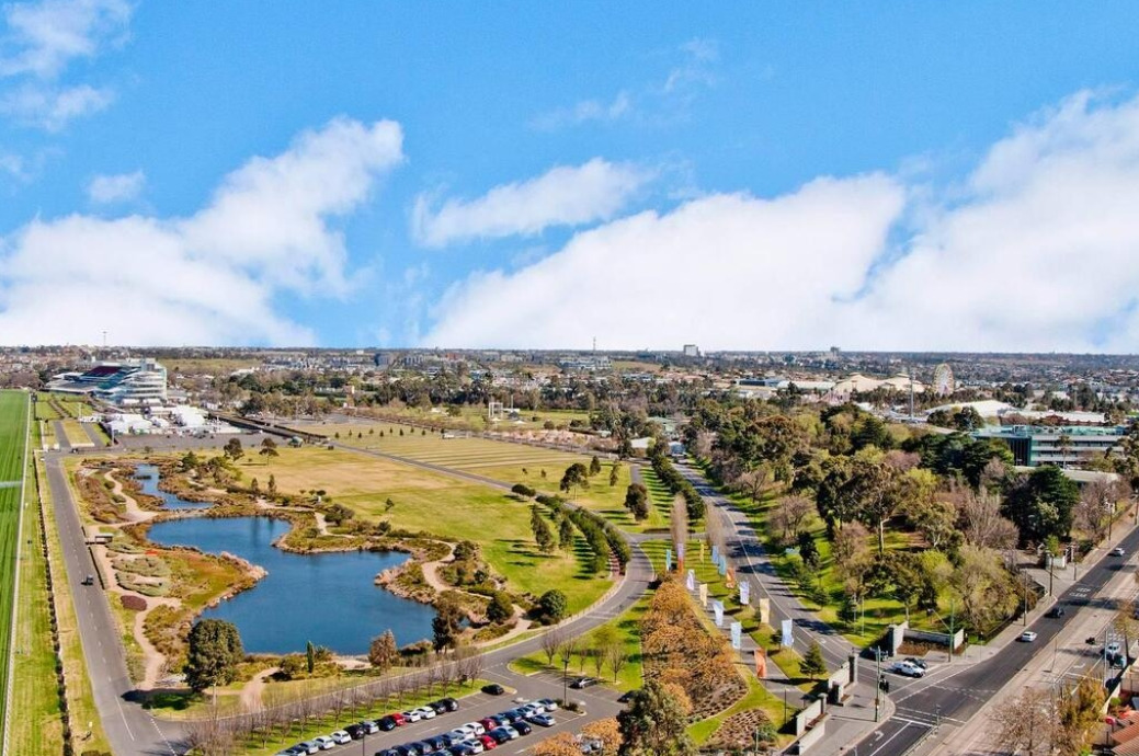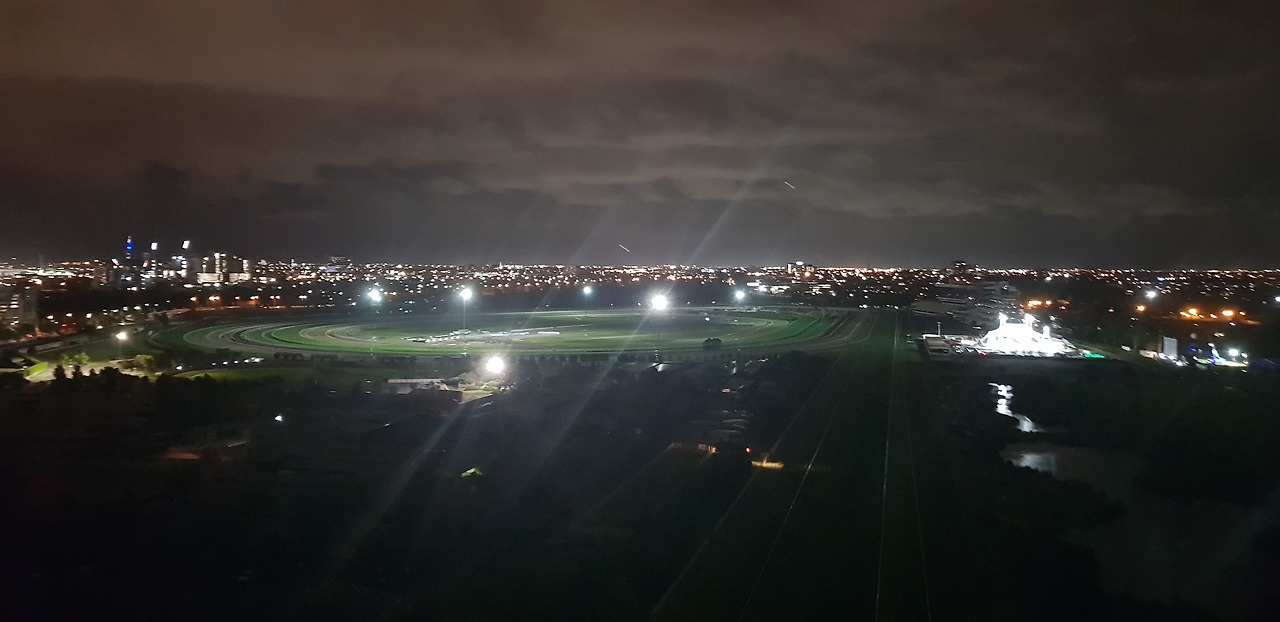 숙소 베란다 뷰. 멜번컵(경마대회)이 열리는 경마장이 한 눈에 보여요.