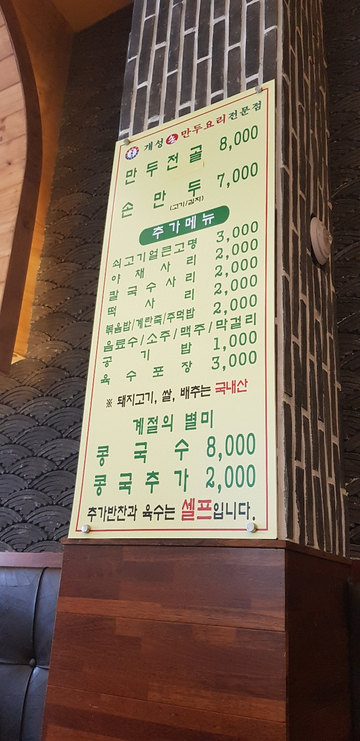메뉴판이 맘에 들어서 찍어봤어요. 요즘 골목식당을 잘 챙겨보는데, 음식을 안 먹어봐도 만두와 콩국수는 잘할 것 같은 느낌이 와요. 백종원이 솔루션을 전하는 가게마다, 메뉴를 시원시원하게 정리해주는 모습이 좋더라구요. 여기는 정리할 게 없을 만큼 깔끔해 보여요.