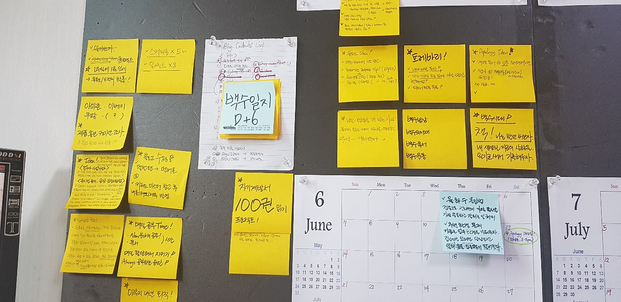 대학시절부터 만들어온 상황판. 스쳐 지나가거나, 버리기 아까운 아이디어들을 바로 덕지덕지 붙여놓아요. 제게 메모는 눈에 잘 보여야 나중에 활용하기가 쉽거든요. (확대금지ㅋ)