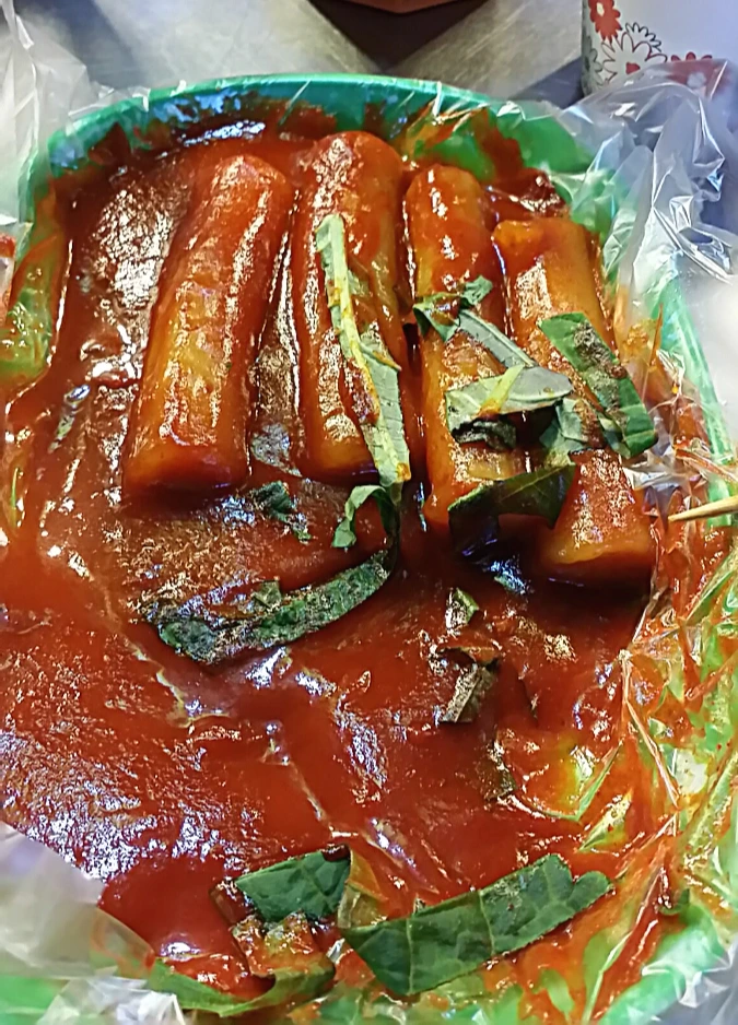 딱 네 가닥의 떡볶이만 남아 있었습니다.