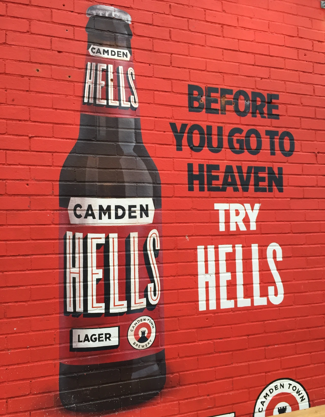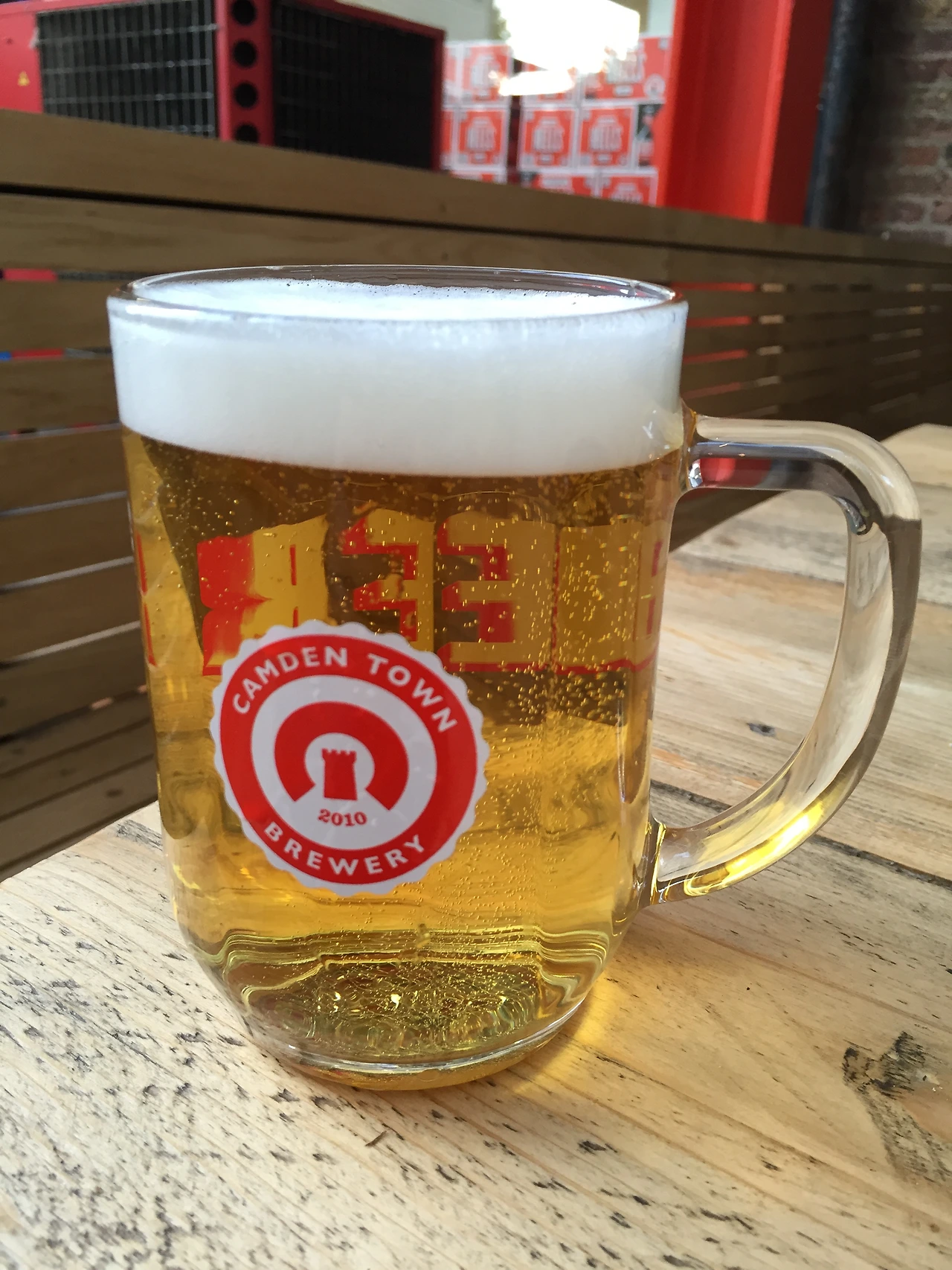 캠든 타운 브루어리를 구경하고 싶었기에 브루어리 투어를 사전에 미리 신청했다. 투어 비용은 15파운드(현재 환율 기준 약 23000원)이다. 브루어리 투어는 보통 목요일, 금요일, 토요일에 진행된다. 목요일과 금요일 투어 시간은 18:30pm이며 토요일은 13:00pm와 15:00pm에 진행된다. 투어 당일날 투어 시작 시간에 딱 맞추어 가는 것보다 여유롭게 도착해서 주변을 둘러보고 싶었기에 좀 일찍 출발했더니 약 20분 정도 일찍 도착했다. 20분이면 1/2 pint 한 잔 마시기에 딱 좋은 시간이다. 브루어리 투어를 기다리면서 마실 캠든 타운의 대표 맥주인 캠든 헬스 라거(Camden Hells Lager)를 주문했다. 대부분의 크래프트 맥주 회사가 페일 에일, IPA, 밀맥주, 스타우트에 치중해서 맥주 라인업을 구성하지만, 캠든 브루어리는 신기하게도 대표 맥주가 라거 맥주이고 다양한 라거 맥주를 만들고 있다. 다양한 크래프트 라거 맥주를 즐길 수 있다는 게 캠든 타운 브루어리의 장점이 아닐까 생각된다. 영국에서 쉽게 구매할 수 있는 대표적인 라거 브랜드인 칼링(Carling)과 포스터(Fosters)를 마시는 게 지루하다면 캠든 타운 브루어리를 방문해서 크래프트 라거를 한 번 맛보는 것도 좋을 거 같다 (뭐 이제 더 이상 크래프트 라거는 아니지만...). 캠든 헬스 라거는 헬레스 스타일과 필스너 스타일을 혼합한 특징을 가진 라거 맥주라고 캠든 브루어리에서는 소개하지만 개인적으로는 독일 필스너 같은 느낌이었다. 도수는 4.6% ABV이며 IBU는 29이다. 야외에서 마실 때 가장 아름다운 라거 색깔인 황금색을 가진 라거 맥주였다. 곡물 맛이 주로 느껴지며 부드러운 하얀 거품 그리고 라이트한 쓴맛이 느껴지는 맥주였다. 청량감이 있고 드라이한 맥주였다.