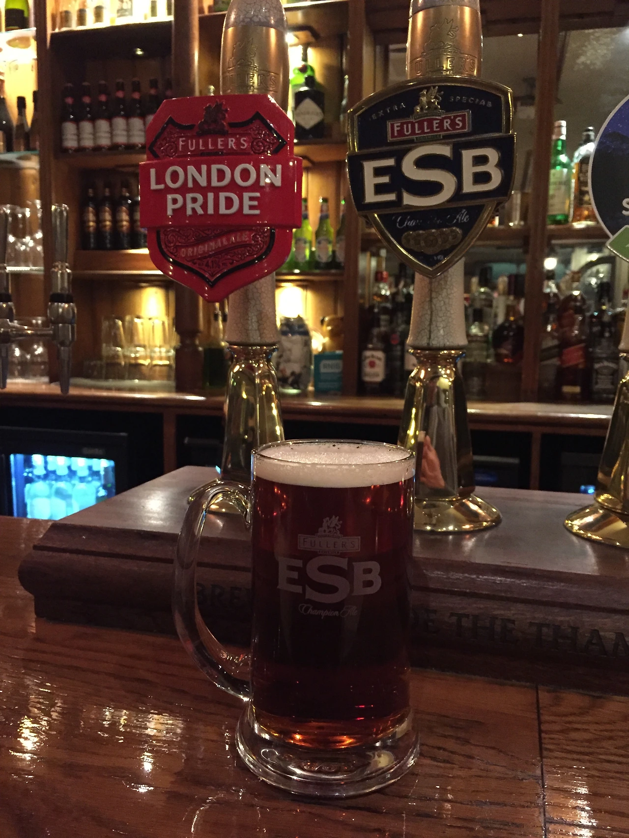 숙소 체크인 후 짐을 좀 풀고 킹스 크로스 역에서 가장 가까운 곳에 위치한 영국 풀러스 양조장(Fuller's Brewery) 소유의 펍인 The Euston Flyer펍에 갔다. 약 5개월 동안 마시지 못했던 매우 영국적인 맥주 케스크 에일(Cask Ale)! 그것도 가장 좋아하는 맥주 중 하나인 풀러스 ESB(Fuller's ESB) 케스크 에일! 풀러스 ESB 한 모금 마시는 순간 오랜만에 느끼는 매우 영국적인 맥주의 맛을 입안에서 느낄 수 있었다. 영국에 왔다는 게 실감 나는 첫 순간이었다. 기나긴 입국심사 줄도 런던의 비좁고 낡은 튜브를 탔을 때도 느끼지 못했던... 맥주 한 모금이 주는 매우 영국적인 느낌이었다. 이 순간을 위해 한국에서 멀리 12시간 걸려 영국으로 날아온 보람이 있다고 느낄 정도로 너무 좋았다. 그렇게 ESB 한 잔 마시면서 영국에 무사히 도착한 것을 자축하며 긴 비행의 피로를 풀었다.