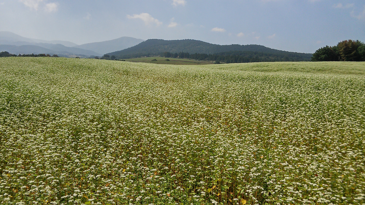 제주섬 한라산 밑 검은오름 근처에는 드넓은 메밀밭이 존재한다.