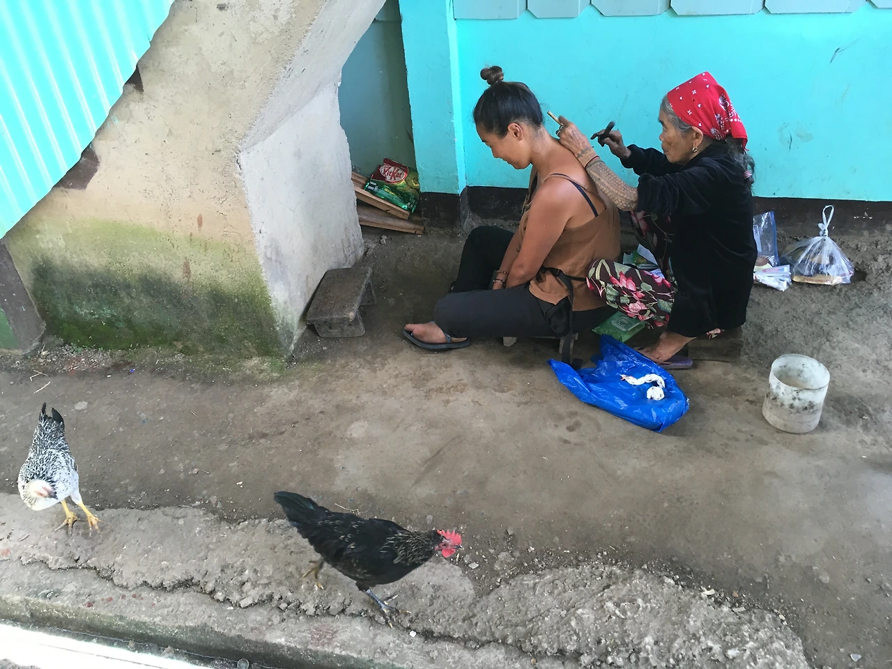 마을로 올라가던 길에 마을 사람들이 가구를 들고 이 길을 올라가는 장면도 목격할 수 있었다. 것도 장롱만큼 큰 옷장을 들고. 나는 배낭 하나만 들고 이 길을 오르는 데도 오분이 지나니까 온 몸에 땀이 범벅이 되었었다. 이 더운 날씨에 매일을 이렇게 짐을 들고 오르락내리락하는 마을 사람들이 대단하다는 생각이 들었다. 길이 나있지 않은 마을을 방문하는 건 난생처음이어서 사실 신기하기도 했다. 특히나 마을에는 아이들이 많이 살고 있었는데, 학교에 가려면 매일을 한 시간 넘게 걸어 다녀야 한다. 생각해 보면 엄마의 고향인 경상남도 깡시골 동네에서도 엄마와 삼촌들은 저렇게 몇 시간씩 걸어서 학교를 오가곤 했겠지 라는 생각이 든다.