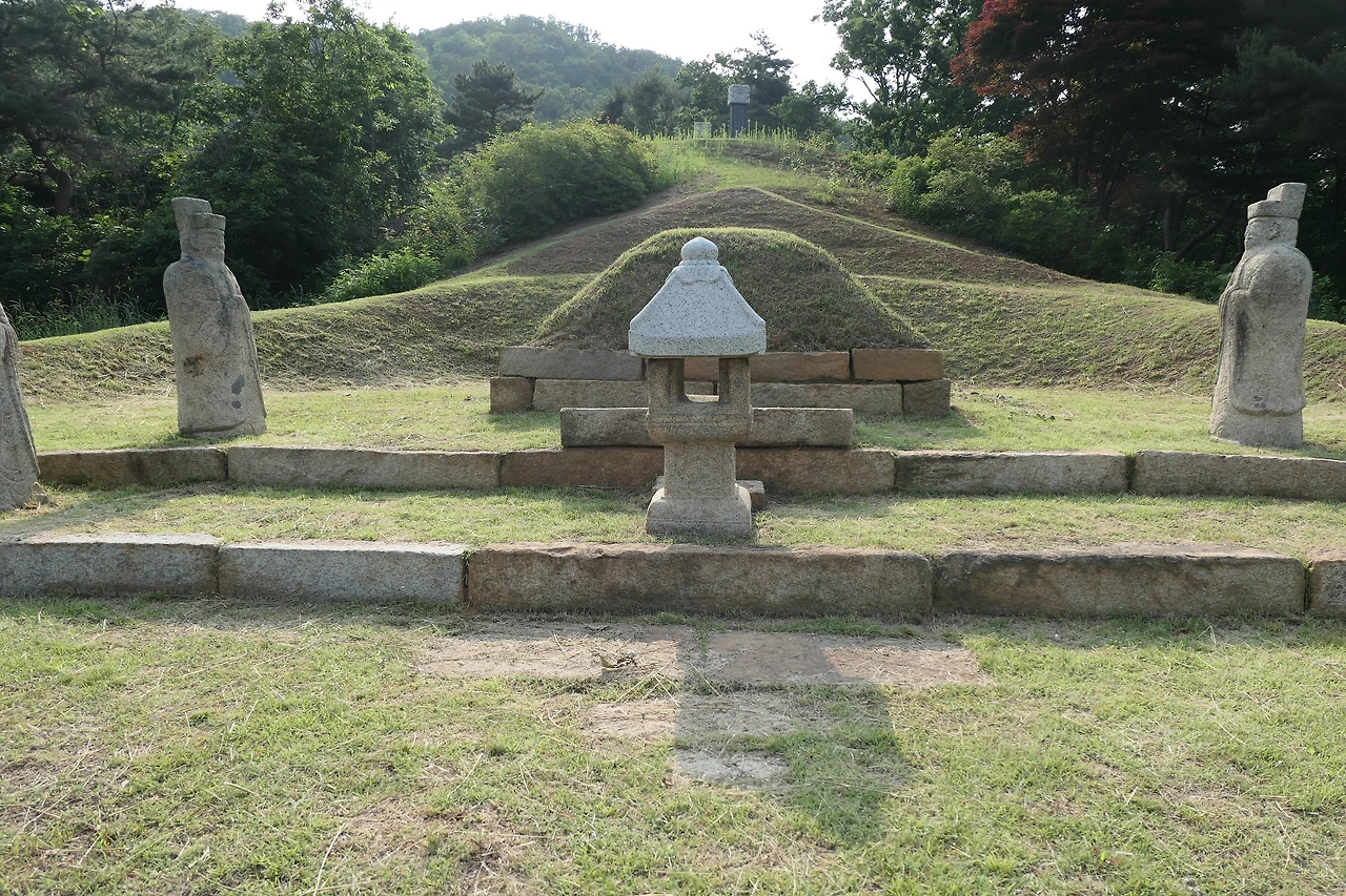 묘역는 문인석 2쌍 4기, 장명등 1기, 장방형 석상, 사각형 묘로 구성되어 있다. 장명등은 조선 초기에 만든 것으로 사모 지붕은 없어져 새로 보수한 것이다. 문인석은 태조가 묻힌 건원릉과 태종의 헌릉 문인석 양식과 같다. 복두를 쓰고 얼굴에는 미소를 짓고 있으며, 홀을 잡은 두 손이 옷소매에 덮여 있는 것이 특징이다. 묘역 입구에는 신도비와 향토 유적 안내판이 있다.