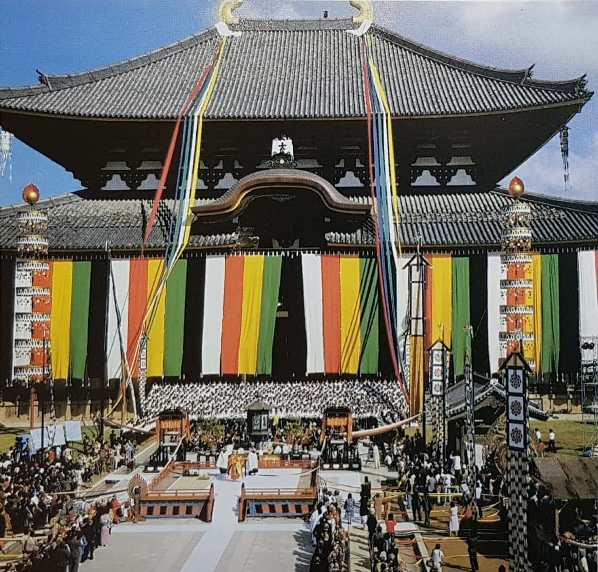 751년(天平勝宝3) 대불전(大佛殿)이 완성되고, 다음 해 4월 9일 성대한 대불개안 공양식(大佛開眼供養式)이 치러졌다.