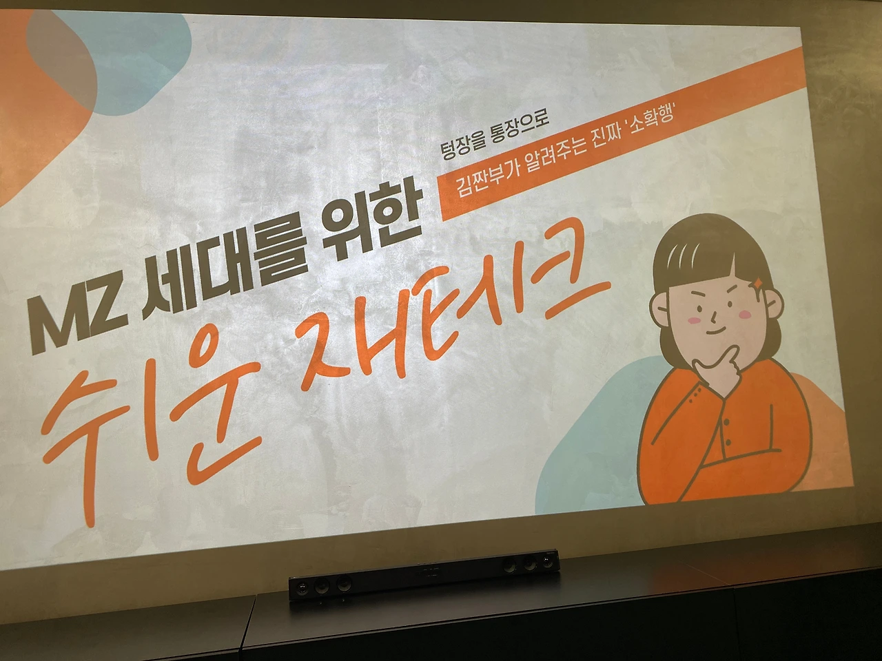 오늘은 넷플연가에서 열린 김짠부 유투버님의 ‘MZ세대를 위한 재테크’ 강연을 듣고 왔다. 시국이 시국인만큼 강연을 연기해야 말지 고민을 하셨다던 담당자님의 말로 이야기가 시작되었다. 모두들 마스크를 쓰고 김짠부님을 바라보았다.