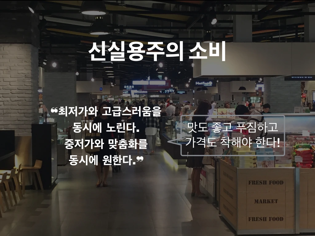 저성장과 장기불황시대로 접어들면서 가격과 가치를 동시에 추구하는 신실용주의 흐름이 태어나 이 시장에 가세했다.