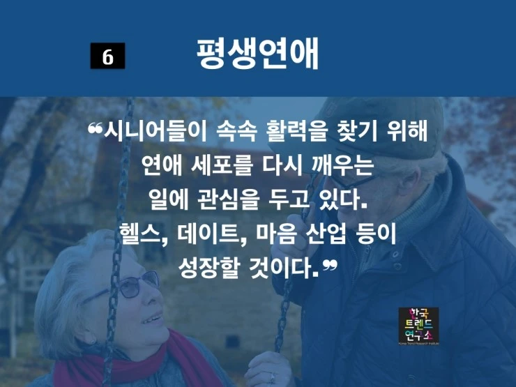 따라서 고령화는 무수히 많은 싱글들을 양산 새로운 청춘 산업을 창조할 것이다.