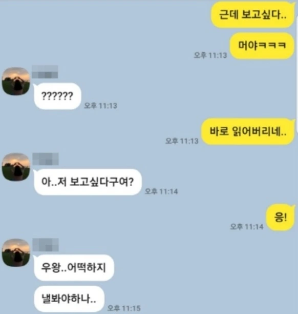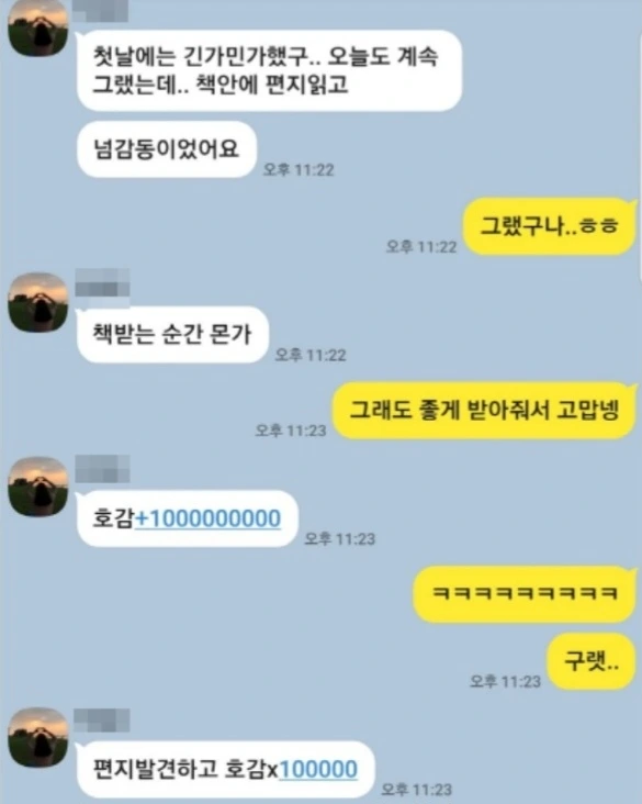 나의 책 선물을 받은 그녀와의 대화내용이다. 두 번째 만남이 있었던 그날 밤 뜬금없이 보고 싶다는 나의 직진을 받아준 그녀와 나는 다음 날 또 만나게 되었다. 그리고 만난 지 4일 만에 나의 직진에 못 이기는 척 그녀는 나와 연인이 되었다.