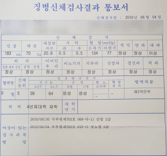 병무청 병역판정 담당자가 나에게 했던 말이다. 제2 국민역, 이것으로 판정 나면 5급으로 분류된다. 현재는 전시 근로 역으로 정식 명칭이 변경되었다. 이 타이틀을 얻게 되면 현역 입대 및 예비군 훈련이 모두 면제된다. 더불어 민방위 훈련만 잘 받으면 대한민국 남성으로의 국방의 의무는 다하는 것이다. 내 인생에는 군 입대란 없다는 것이 확정된 순간이었다. 군대를 가지 않으려고 온갖 꼼수를 부리는 세상에 이것을 좋아해야 하는 것인가라는 생각이 들었다. 그렇지만 마냥 좋아할 수만은 없었다.