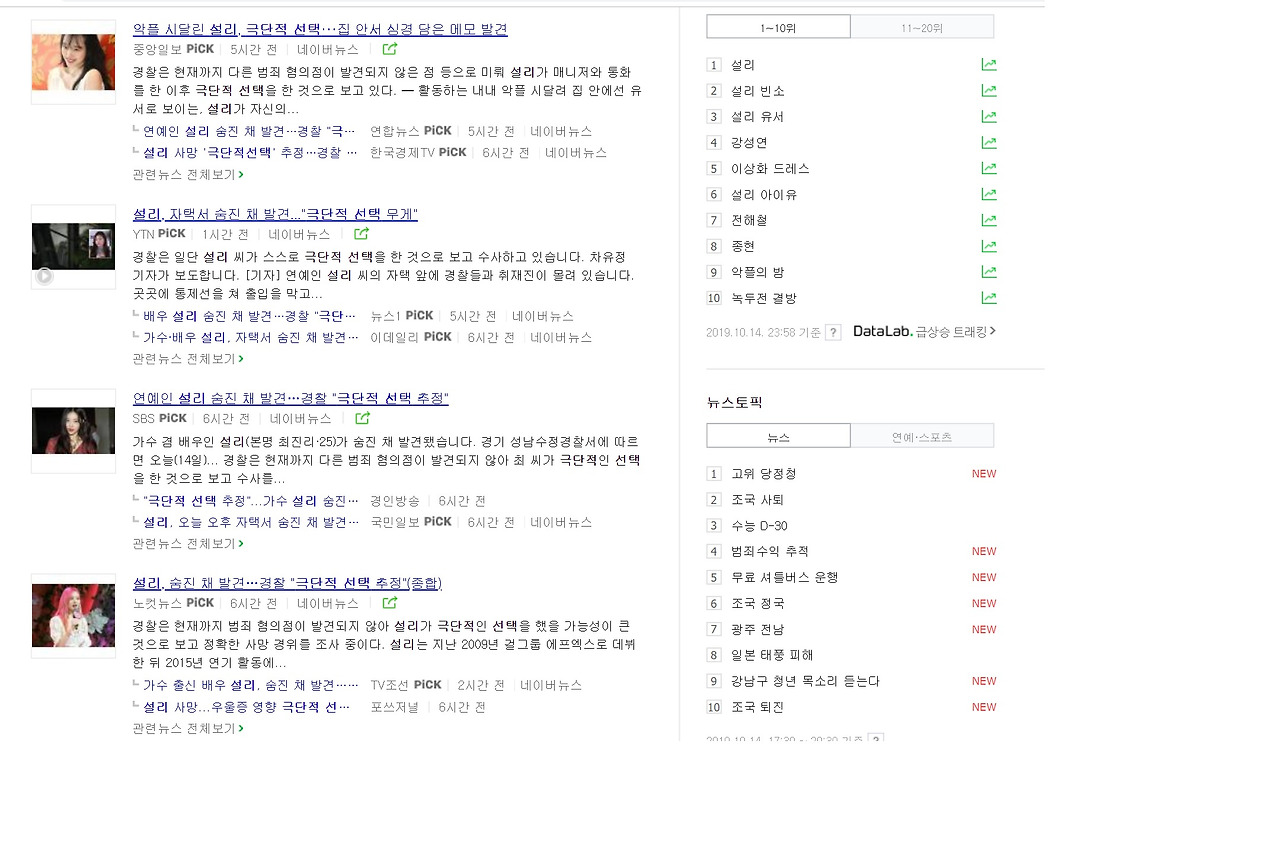 우리 사회는 지난 십 년간 얼마나 많은 연예인들을 자살로 잃었나. 고 (故) 이은주 씨를 비롯해서, 국민 배우였던 최진실 씨, 지금의 설리 (본명 최진리) 씨까지, 아마 열 손가락으로 꼽아도 모자라지 않을까.