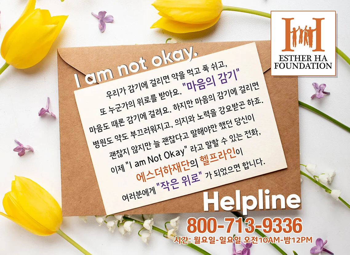 이 글을 쓰면서 새삼, 아시아계 미국인, 더 나아가 한국 교민들의 정신 건강에 대한 연구가 얼마나 부족한지를 깨닫게 되었다. 그리고, 교민 사회에서 정신 건강 전문가로서 우리의 역할에 대해, 어떻게 하면 교민 사회에 도움이 될 수 있을지에 대해서 고민하게 되었다. 많은 교민들이 정신 건강에 문제가 있어도, 문화적, 언어적, 그리고 경제적 장벽으로 인해, 또 정신질병, 정신과에 대한 낙인 때문에 치료를 받지 못한다는 사실은 이미 알고 있었지만, 바쁜 스케줄을 탓하며 미루었던 일들을 조금씩 진행하게 되었다. 그래서 에스더 하 재단을 통해 뜻이 맞는 정신과 의사 분들과 함께, 정신과 질병, 치료에 대한 장벽을 낮추기 위한 강연들을 계획하게 되었다. 그리고, 도움이 될 수 있는 방법들에 대해 더 고민하고, 노력해나갈 예정이다.